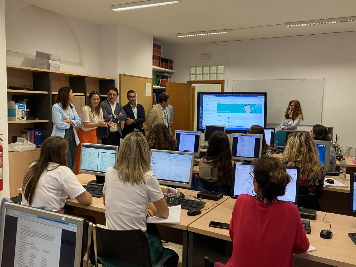 El delegado territorial de la Consejería de Empleo, Empresa y Trabajo Autónomo, Daniel Sánchez; la primera teniente de alcalde, Sara Lobato, y la concejal de Empleo y Formación del Ayuntamiento de Los Barrios, Cristina Silva, han visitado hoy el centro ‘Maestro Quico’ donde, desde la pasada semana, se desarrolla el proyecto ‘Los Barrios Acerc@’, un programa de enseñanza teórica y práctica que permitirá a los participantes la obtención de un certificado de profesionalidad de nivel 2 en Actividades de Gestión Administrativa.