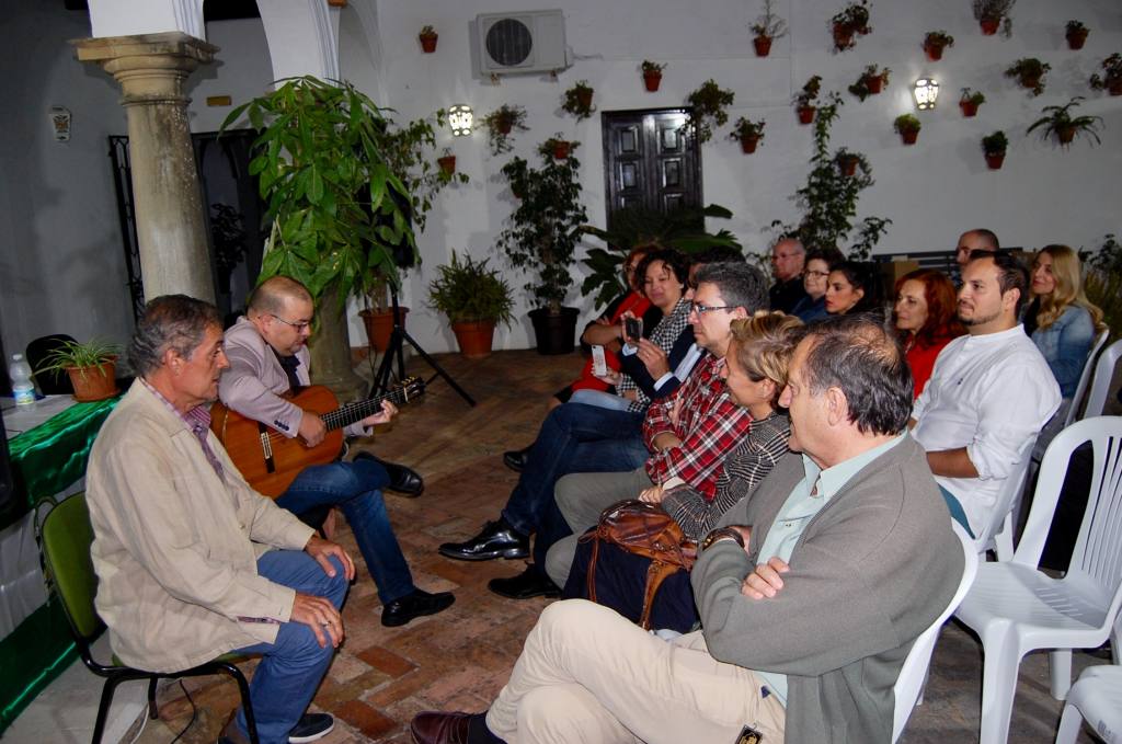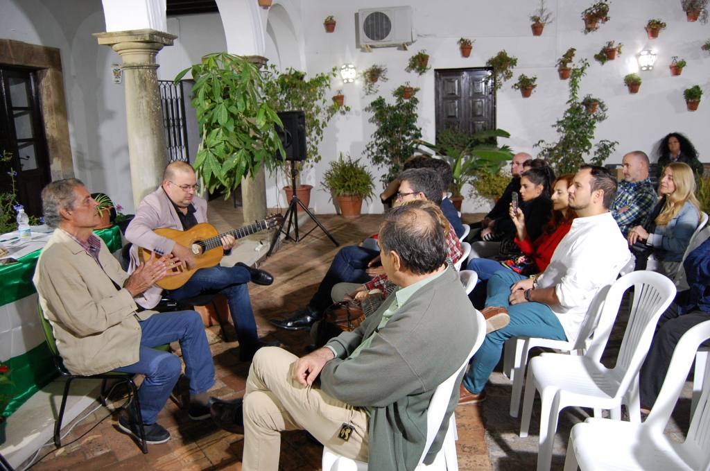 Tras una amena disertación sobre ‘Cuentos de Sirenas’ y su temática, el autor Manuel Malia deleitó al público presente con dos cantes flamencos, acompañados por la guitarra de Romerito, unos de ellos sobre una versión de una canción de Bob Dylan.
