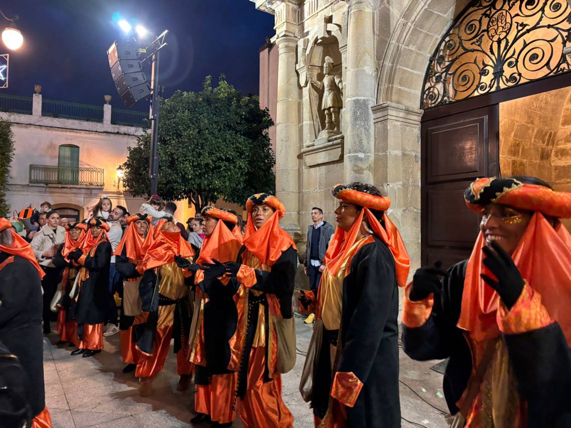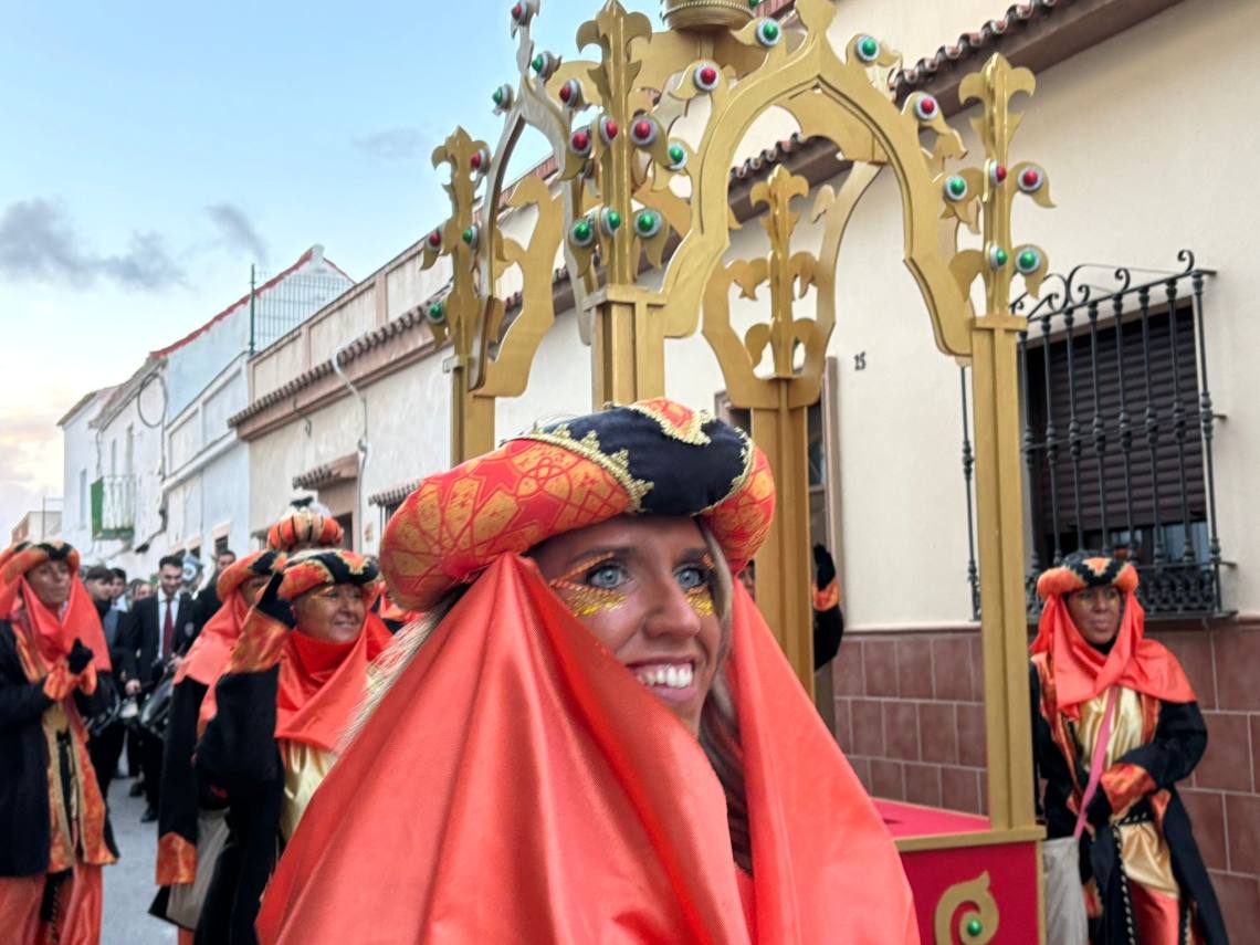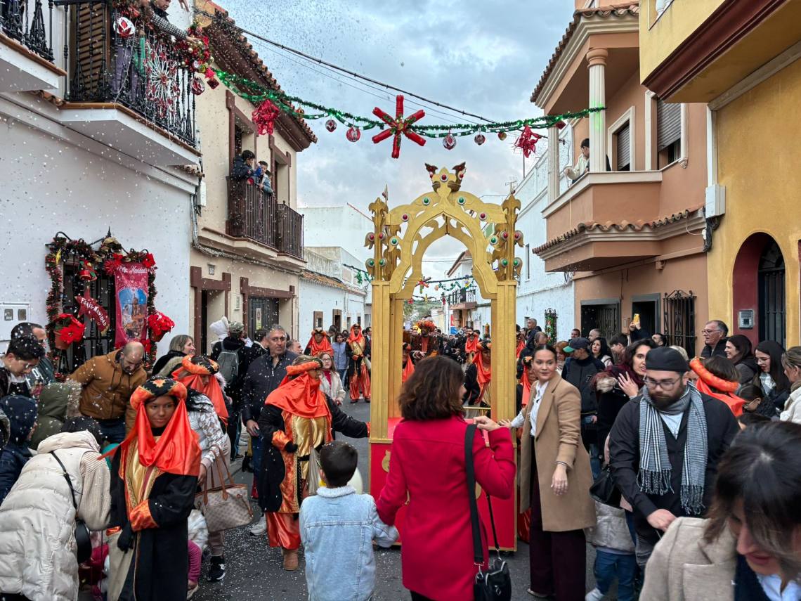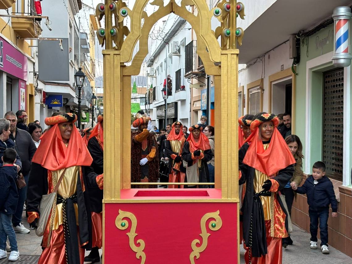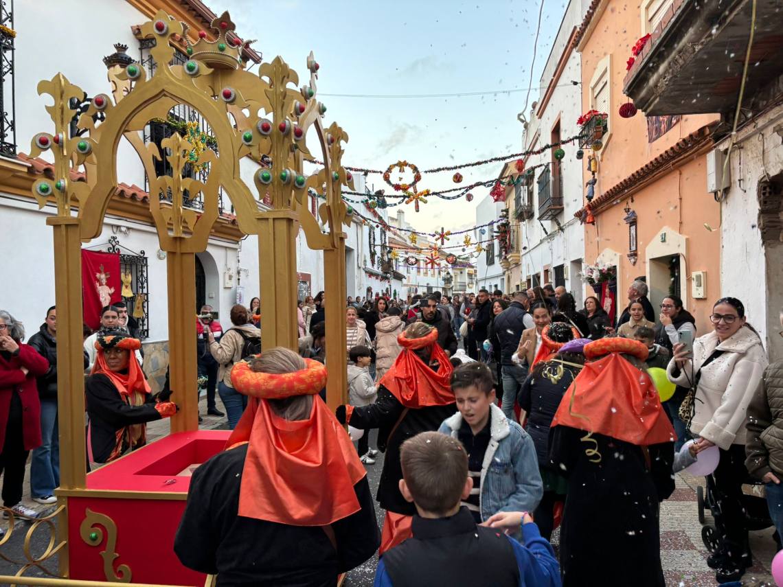 Antes de dicha recepción, el cartero real, acompañado de su cortejo de ayudantes, ha efectuado un recorrido por el centro de la villa, partiendo desde el Paseo de la Constituciòn, hacia las 17:30 h., y pasando por las calles La Plata, Alta, Alcaría, Cervantes, Sol y Mayor hasta llegar a la céntrica Plaza de la Iglesia.
