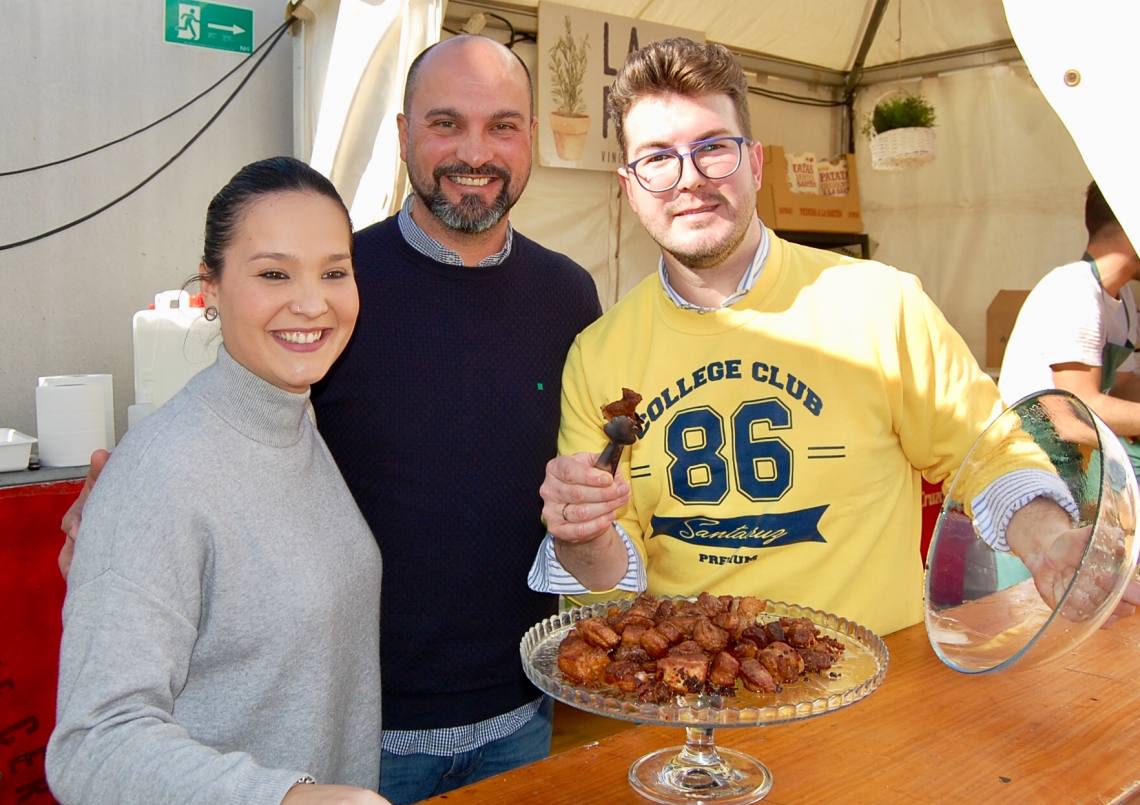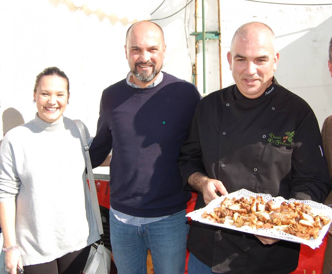 El primer edil, acompañado por el delegado de Turismo, Pablo García; y el edil de Festejos, Daniel Pérez Cumbre; y resto de equipo de gobierno municipal, abrieron oficialmente el Festival del Chicharrón visitando uno por uno los diez expositores de la feria.
