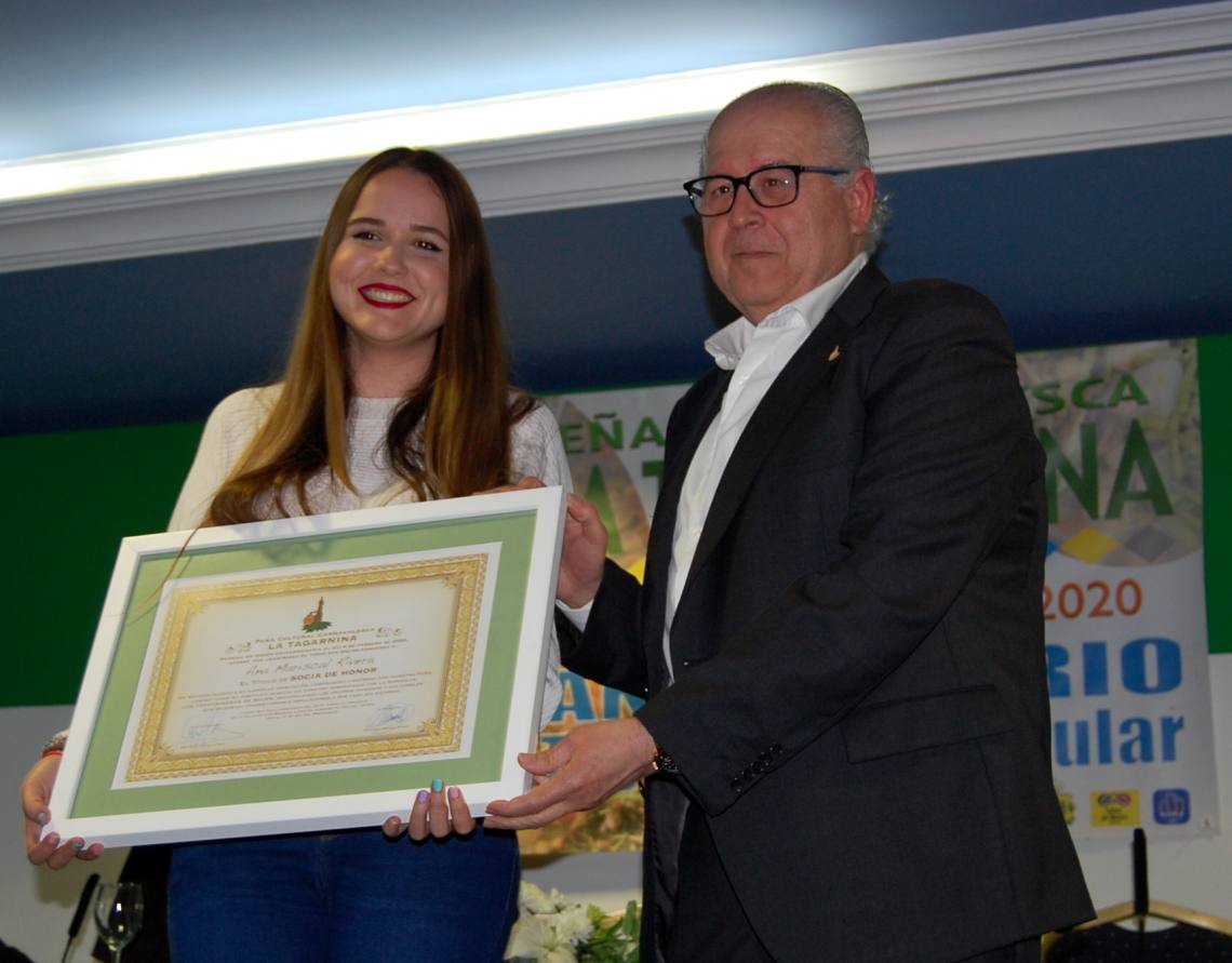 Otro de los momentos entrañables del acto fue el reconocimiento por parte De la Peña como socia de honor a Ana Mariscal Martínez, por la gran aportación que ha realizado a pesar de su juventud tanto a favor de la Tagarninada como de la rondalla de Los Tagarnineros.