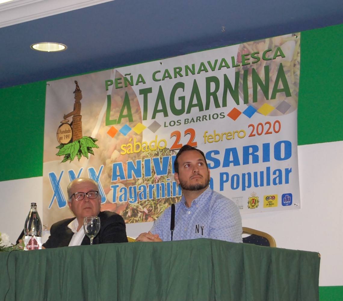 El concejal de Festejos del Ayuntamiento de Los Barrios, Daniel Pérez Cumbre, presidió la mesa junto al presidente de la Peña La Tagarnina, Nicolás Ceballos; y el secretario, José Mariscal. También acompañó a la Peña en el acto, el concejal delegado de Medio Ambiente, José Antonio Gómez.
