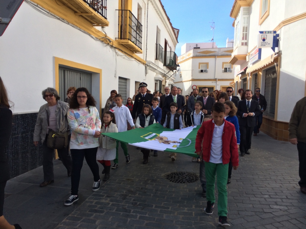 Una vez finalizado el acto, una comitiva encabezada por la banda de música y detrás un grupo de niños han llevado la Bandera Andaluza desde la Plaza de la Iglesia a la Plaza Blas Infante, acompañados por los miembros de la Corporación