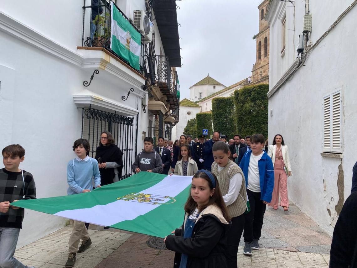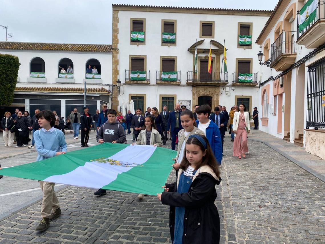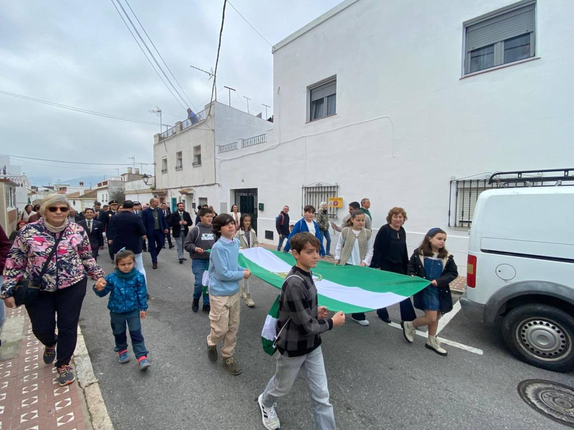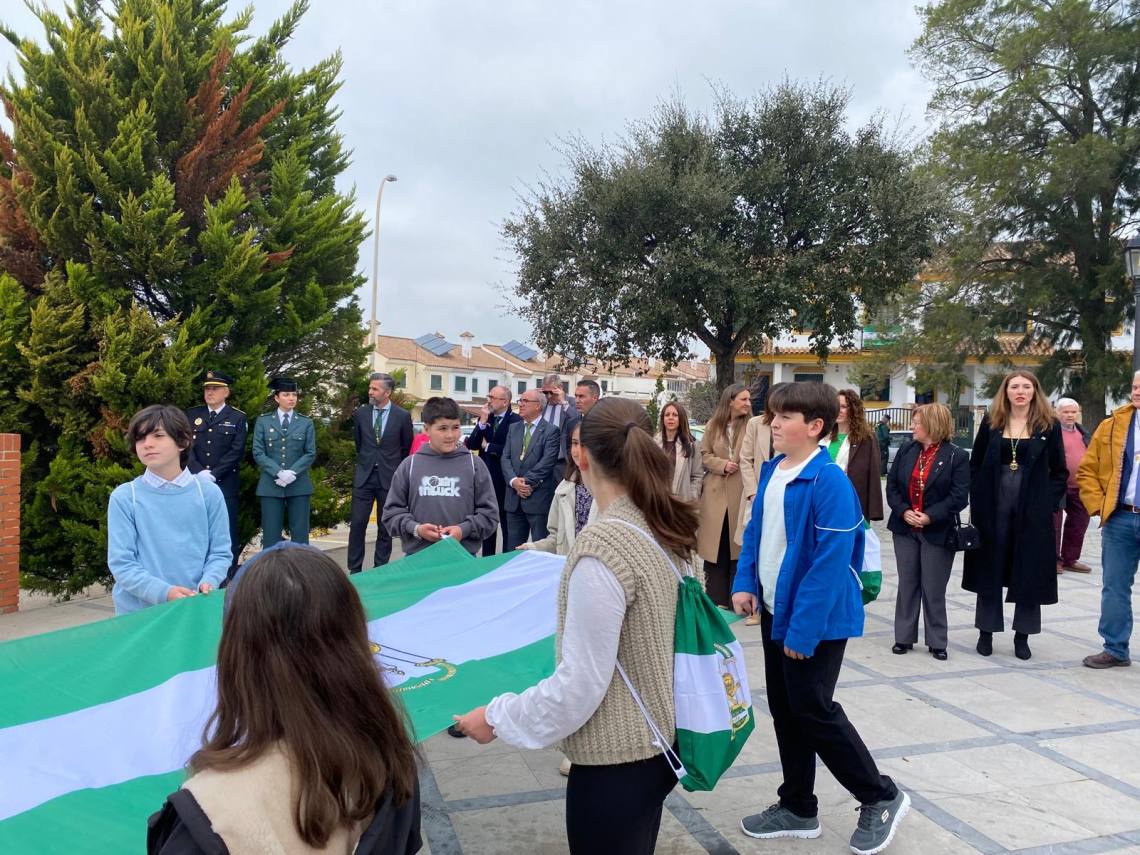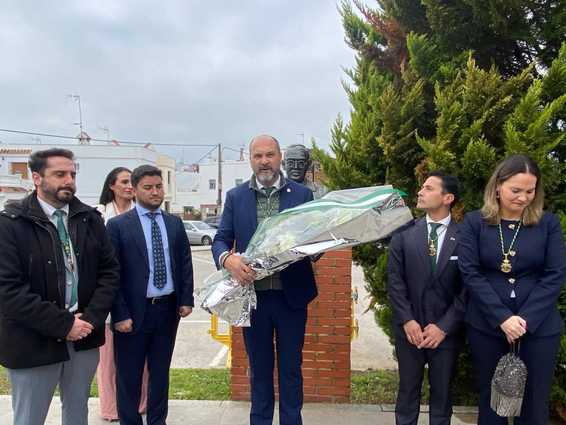 Como ya es tradicional, después de la sesión plenaria, una comitiva de niños, acompañada de vecinos de la localidad y seguida de los representantes de la Corporación, ha porteado la bandera blanca y verde desde la Casa Consistorial hasta la Plaza Blas Infante, junto a la banda de música de Los Barrios. Una vez allí, se ha procedido a su izado ante el busto del padre de la patria andaluza, al que se le han rendido honores con una ofrenda floral por parte del primer edil y cada uno de los portavoces municipales asistentes, a los sones del himno regional.