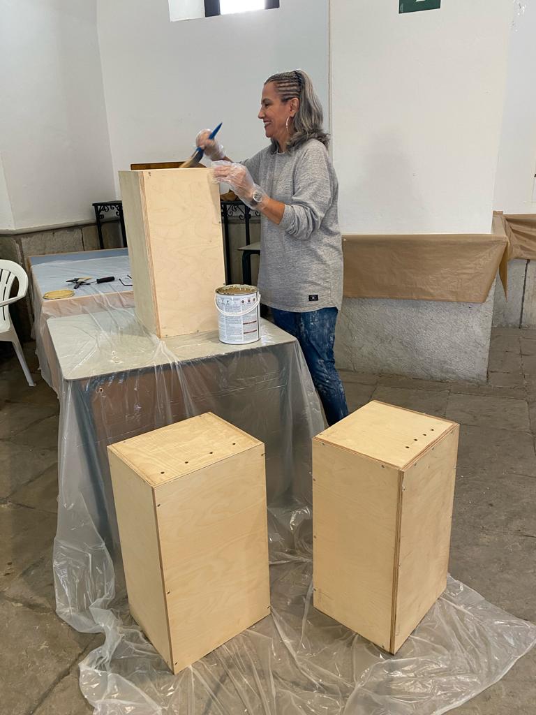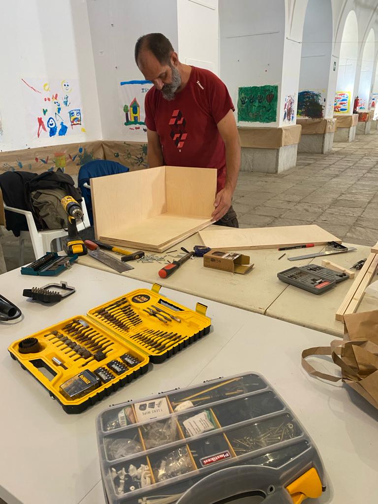 Paralelamente, se ha llevado a cabo la construcción de nuevos nidales, en madera de tablero marino, y su barnizado protector, actividad que se realizado gracias al montaje de un taller móvil de carpintería en el Edificio El Pósito, con un amplio despliegue de maquinaria y herramientas especializadas.