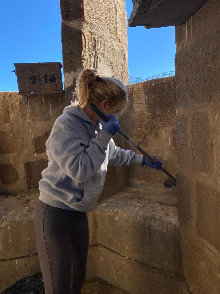 En primer lugar, se ha realizado la limpieza anual de la colonia, especialmente, su núcleo principal, la Torre y otros elementos de la Iglesia San Isidro Labrador, y también las zonas y los nidales ubicados en la fachada del Ayuntamiento y Casino de Los Barrios.