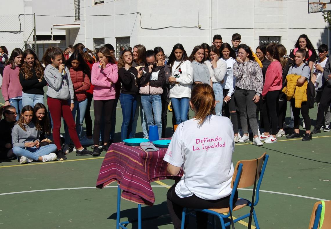El Instituto Sierra Luna de Los Barrios ha acogido esta mañana el tercer y último pase del teatro performance ‘Un día cualquiera’ de la actriz algecireña Carmen Díaz Abellón, confeccionado por la Delegación de Políticas de Igualdad, para conmemorar el 8 de Marzo, Día Internacional de la Mujer.