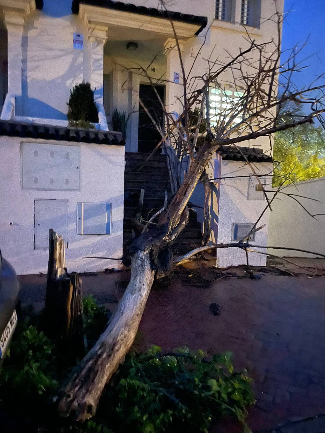 Operarios de ambos servicios están llevando a cabo la localización de las incidencias que se han producido durante la pasada noche y las primeras horas de esta mañana en diferentes puntos de la población y procediendo a la retirada de ramas y otros elementos que han sido derribados por el vendaval.