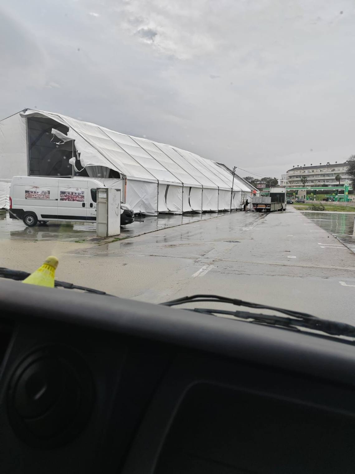Entre los estropicios que el fuerte viento ha causado cabe destacar el derrumbamiento de la carpa que se había instalado en la explanada situada junto al polideportivo San Rafael para la celebración mañana sábado de la fiesta de la tagarninada. Además de esto, el temporal ha provocado desperfectos en la carpa ubicada en el recinto ferial para festejar el Carnaval la próxima semana, así como la caída de arbolado, aunque, afortunadamente, no hay que lamentar ningún daño personal.