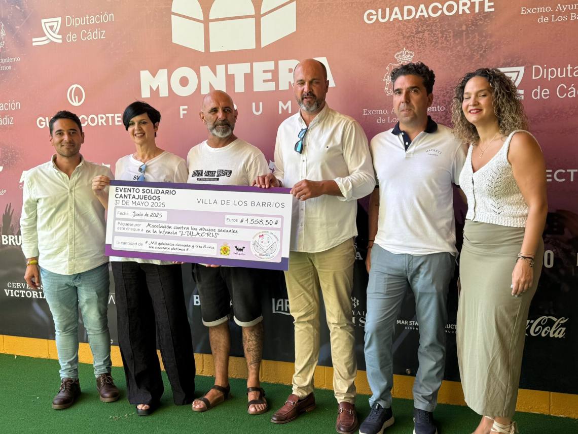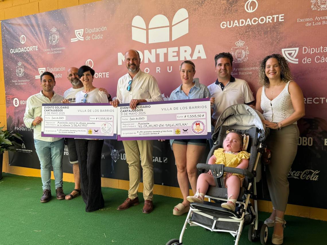 El alcalde de Los Barrios, Miguel Alconchel; la delegada de Participación Ciudadana, Sara Lobato; y el edil de Seguridad Ciudadana, Antonio Dávila; han asistido este mediodía en el Montera Forum a la entrega de 3.107 euros de lo recaudado en el espectáculo benéfico Mega Hits de ‘Cantajuego’, celebrado el pasado mes de mayo.