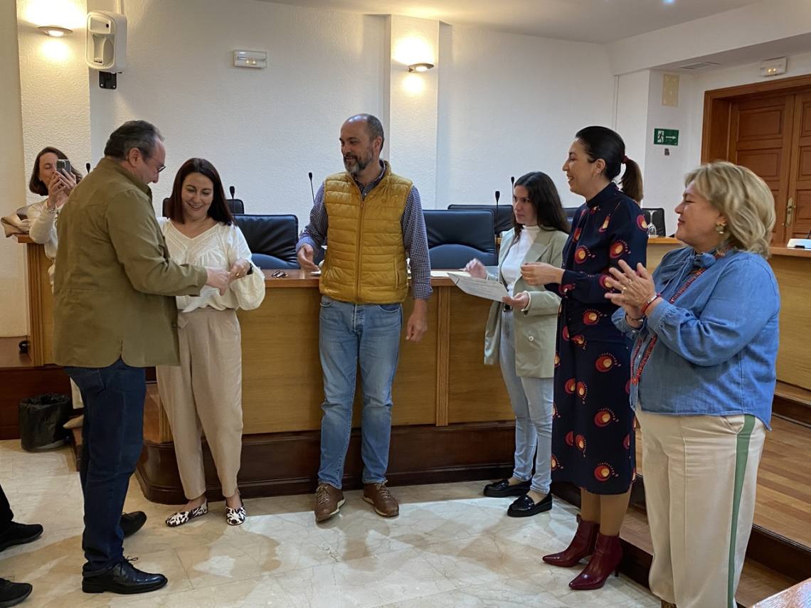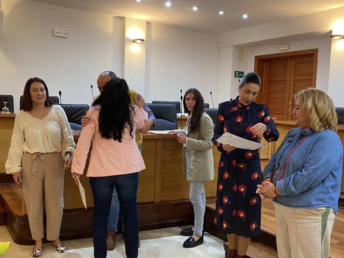 El alcalde de Los Barrios, Miguel Alconchel, y la delegada de Empleo y Formación, Cristina Silva, han presidido la entrega de los certificados de acreditación correspondientes al curso de Instalaciones Eléctricas que se ha desarrollado entre el 10 de marzo y el 21 de abril en el centro ‘Maestro Quico’. El acto ha tenido lugar en el salón de plenos de la Casa Consistorial y ha contado también con la presencia de la delegada de Protección Civil, Geli Ferral.