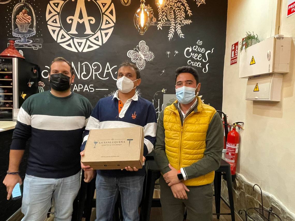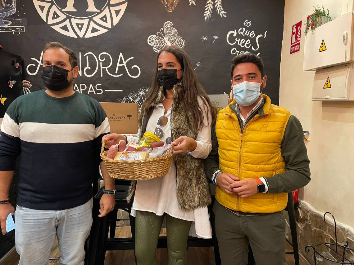 Pérez Cumbre y Dávila han entregado los diferentes premios, en concreto, una cesta de productos ibéricos para el primer premio que ha sido para María del Carmen Jiménez Correro; una caja de la sanluqueña de vinos para el segundo premio que ha correspondido a Joaquín Rubio Gallardo.