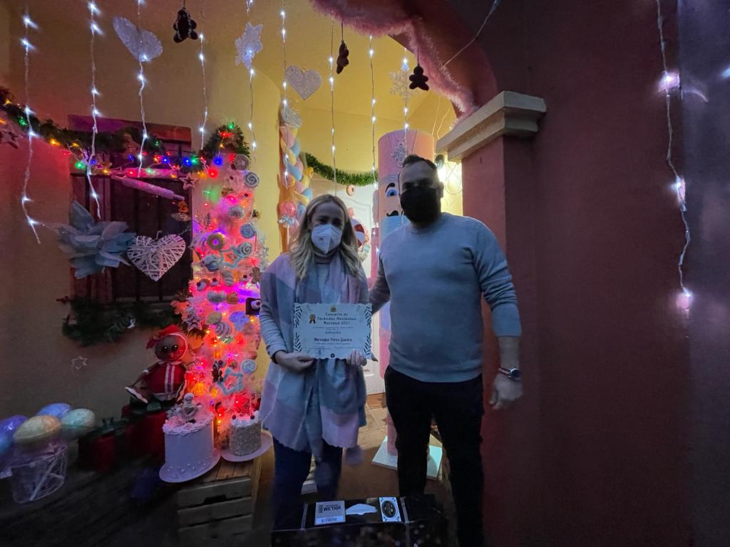 El concejal delegado de Festejos, Daniel Pérez Cumbre, junto a la delegada de Los Cortijillos, May Gallego, ha hecho entrega también de los premios correspondientes a la segunda edición del concurso de fachadas navideñas.