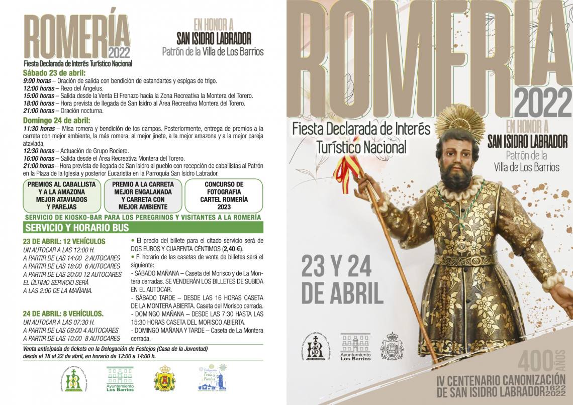 La delegación de Festejos, que dirige Daniel Pérez Cumbre, ha hecho pública la programación de la Romería de San Isidro Labrador, Fiesta Declarada de Interés Turístico Nacional, que tendrá lugar los próximos días 23 y 24 de abril. Celebración popular, de las más destacadas del calendario festivo de Los Barrios, recuperada en 1964 y que vuelve, después de dos años de interrupción como consecuencia de la pandemia, coincidiendo, además, con la conmemoración del cuarto centenario de la canonización del santo patrón.