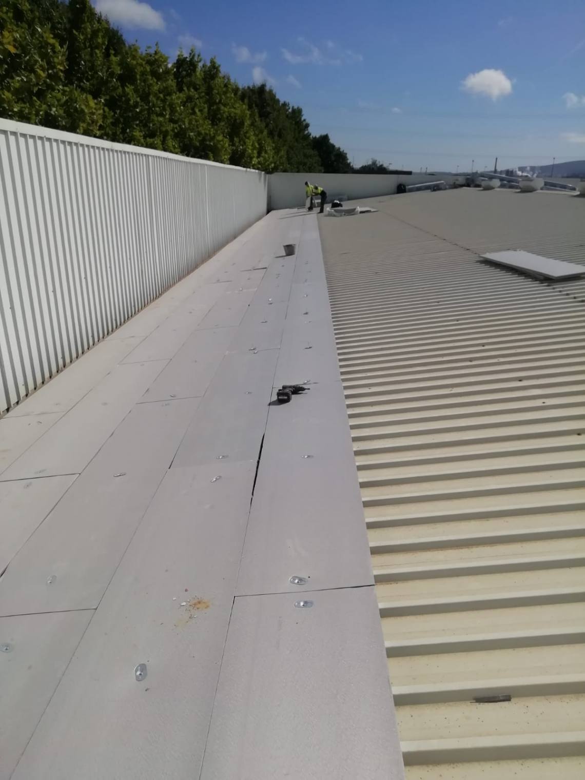 La intervención ha sido realizada por la empresa Impermeabilizantes Guerrero y han consistido en la colocación de un panel rígido aislante de espuma de polisoocianurato y la posterior instalación de una lámina sintética de pvc.