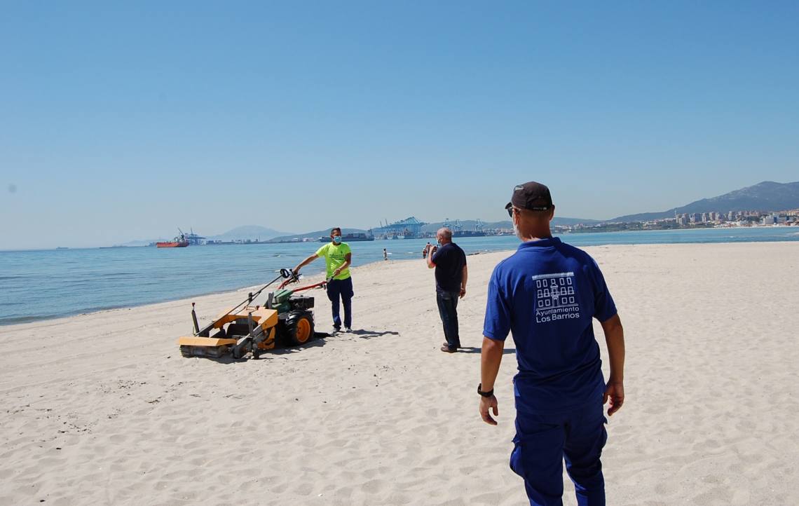 El delegado de Playas y Medio Ambiente del Ayuntamiento de Los Barrios, José Antonio Gómez, ha visitado esta mañana la playa de Palmones, junto a un técnico de Medio Ambiente, para supervisar las labores de limpieza que el consistorio está realizando de cara a la reapertura al baño el próximo 25 de mayo, bajo la normativa de obligado cumplimiento del estado de alarma decretado por el Gobierno de España por la crisis sanitaria del Covid-19.