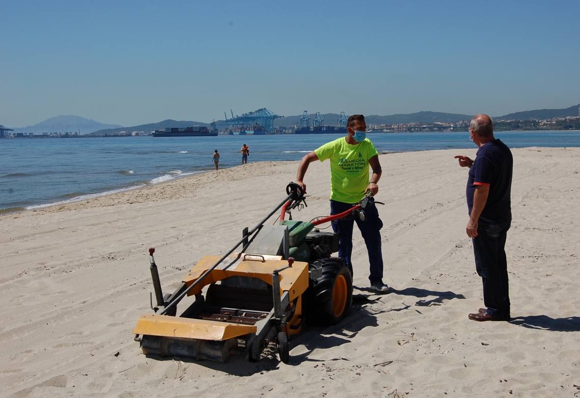 Gómez recuerda que la puesta a punto de la playa de Palmones tiene dos fases: una primera, de cara a la fecha del 25 de mayo por la reapertura al baño; y una segunda fase, que ya correspondería a la tradicional Campaña de Verano, con fecha de 15 de junio a 15 de septiembre.