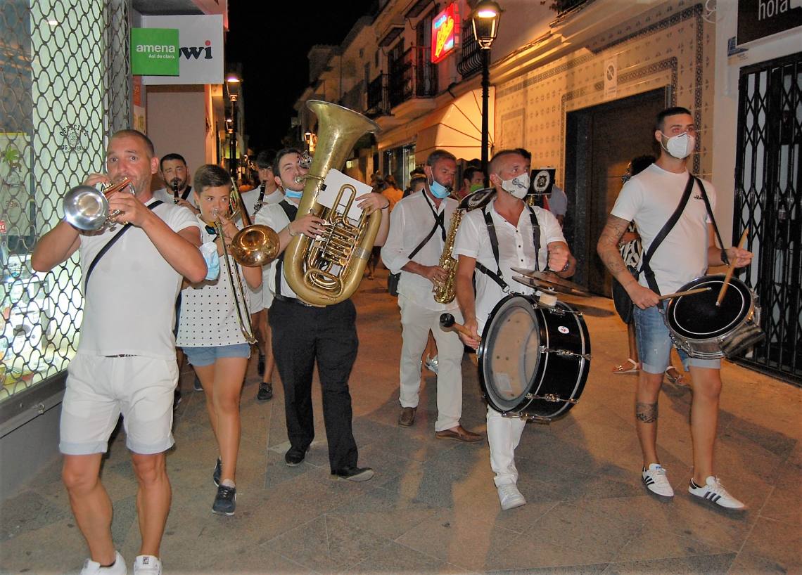 Además del mercadillo artesanal la noche también fue animada con la actuación itinerante por las calles de una charanga musical.