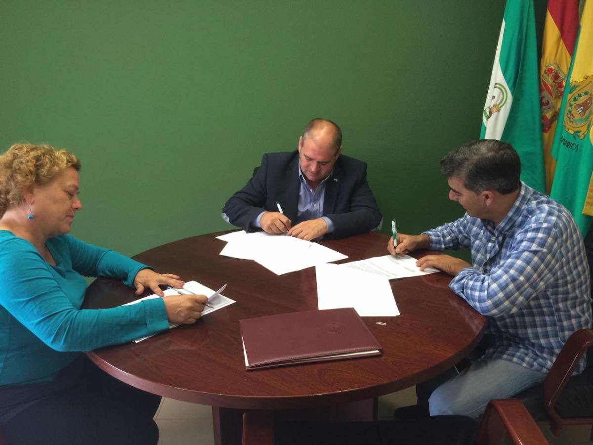El alcalde de Los Barrios, Jorge Romero, y la delegada de Festejos, Carmen Roldán, has firmado este mediodía el convenio de colaboración con el presidente de la Peña Cultural Toro Embolao, Joaquín Gil, para la celebración del I Certamen de Toreo de Salón que se celebrará el próximo 31 de octubre a las 12 de la mañana en la plaza de toros La Montera de Los Barrios. La entidad barreña es la encargada de promover este evento que se celebrará por primera vez en la comarca y está al frente el novillero barreño Juan Antonio Medina.