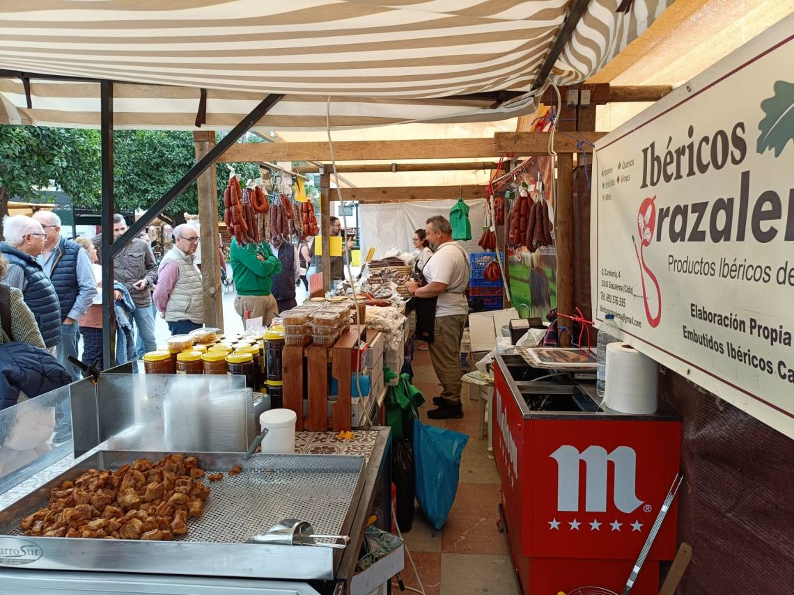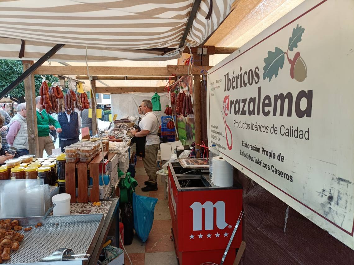 Los visitantes podrán encontrar puestos de venta de chacinas, embutidos y derivados del cerdo ibérico de las marcas más destacada como: jamón, caña de lomo, salchichón, chorizo, chicharrones etc. Además de puestos de abalorios, pan, chuchería, productos artesanales, aceite y quesos y de cerveza artesana.