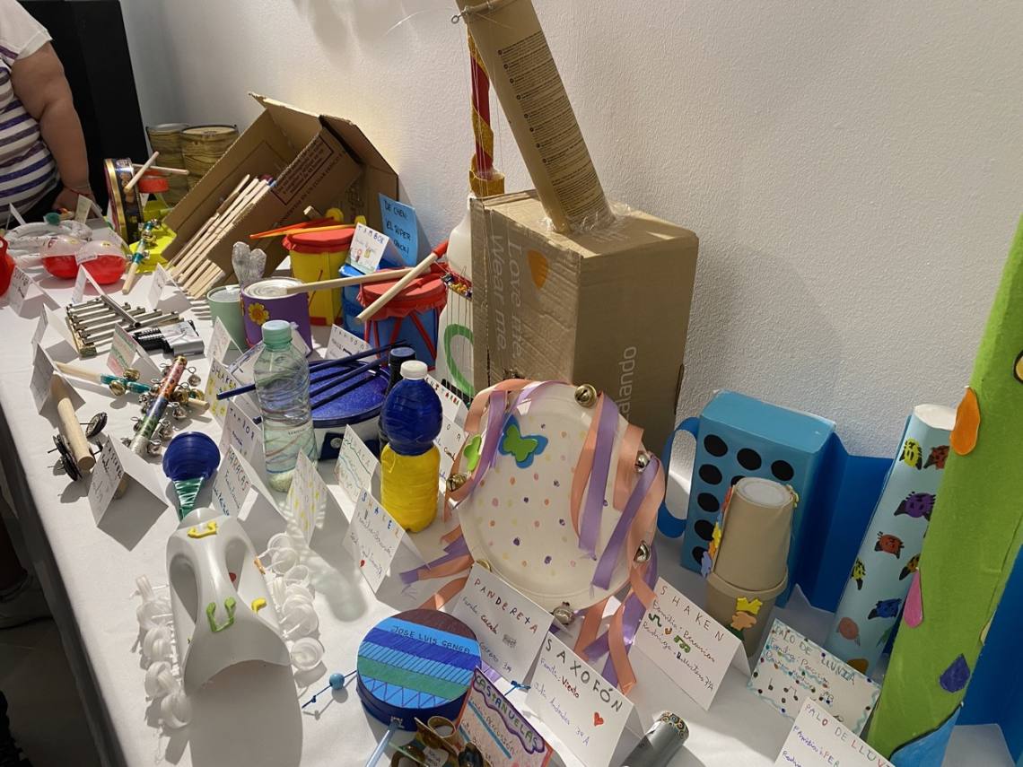 Inaugurada la exposición de instrumentos musicales reciclados fabricados por escolares del CEIP San Isidro en la Casa Urrutia