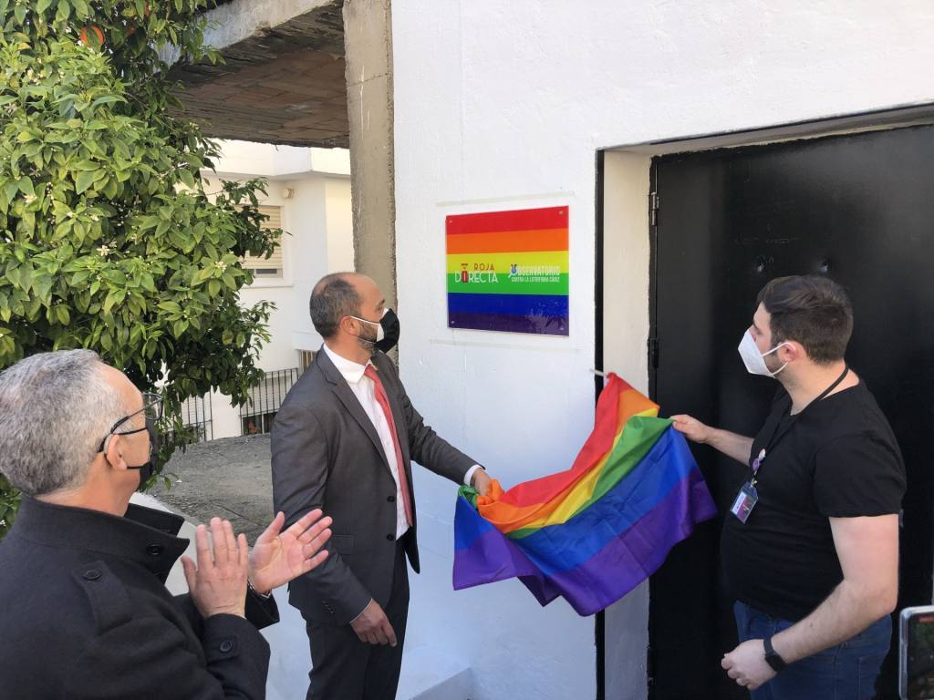 El alcalde de El alcalde, Miguel Alconchel; la responsable de la delegación de Políticas Igualdad, Sara Lobato; el presidente de la Asociación Roja Directa LGTBI, Jesús Tomillero, han inaugurado esta tarde la sede del primer Observatorio contra la LGTBIfobia de la provincia de Cádiz, situado en un local de la barriada Nuestra Señora de Fátima.