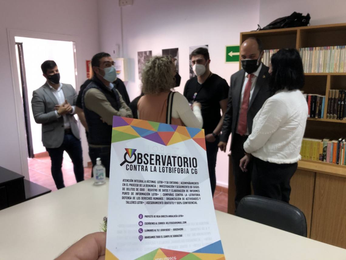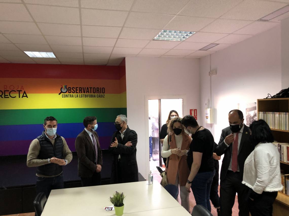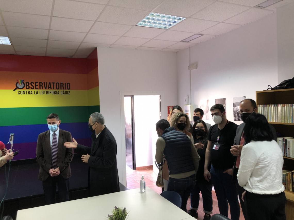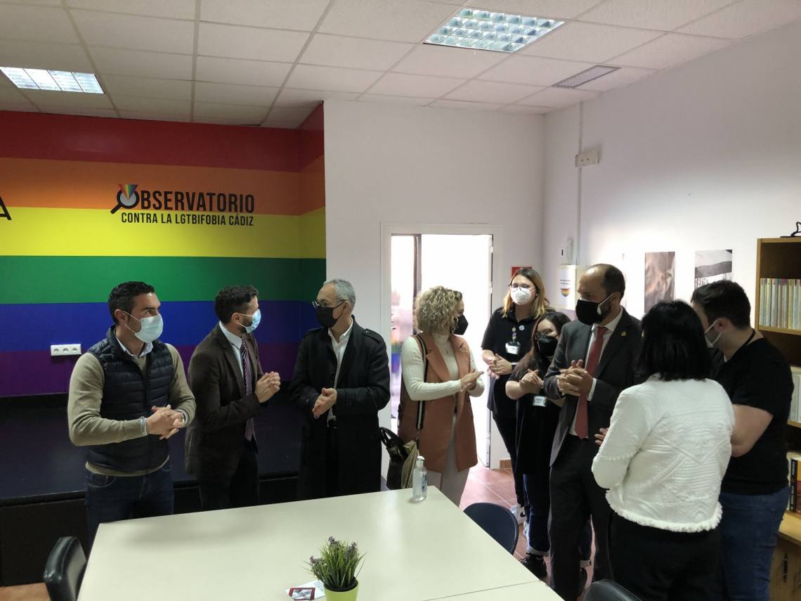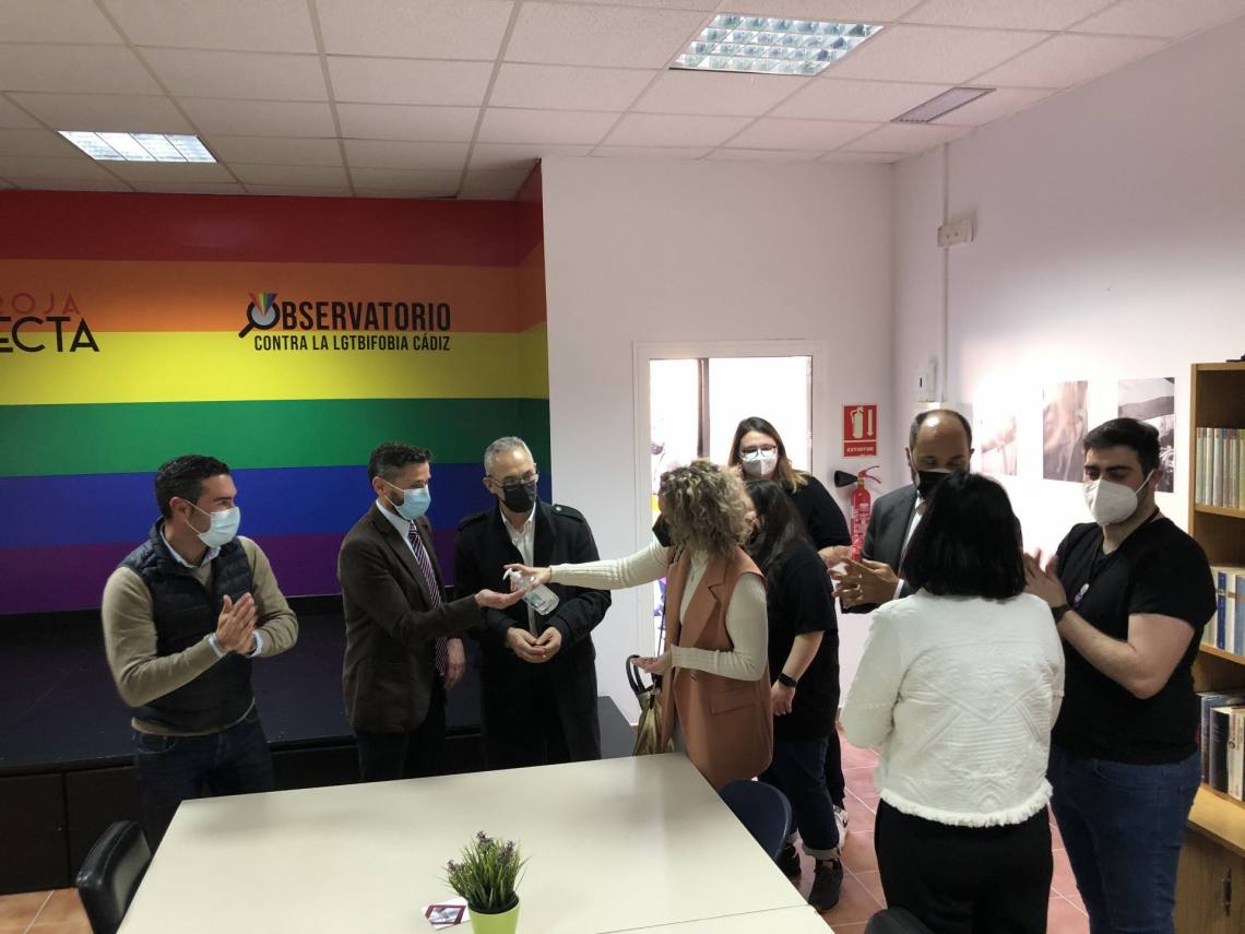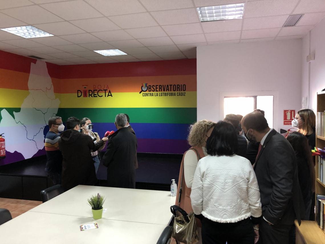 El alcalde de El alcalde, Miguel Alconchel; la responsable de la delegación de Políticas Igualdad, Sara Lobato; el presidente de la Asociación Roja Directa LGTBI, Jesús Tomillero, han inaugurado esta tarde la sede del primer Observatorio contra la LGTBIfobia de la provincia de Cádiz, situado en un local de la barriada Nuestra Señora de Fátima.
