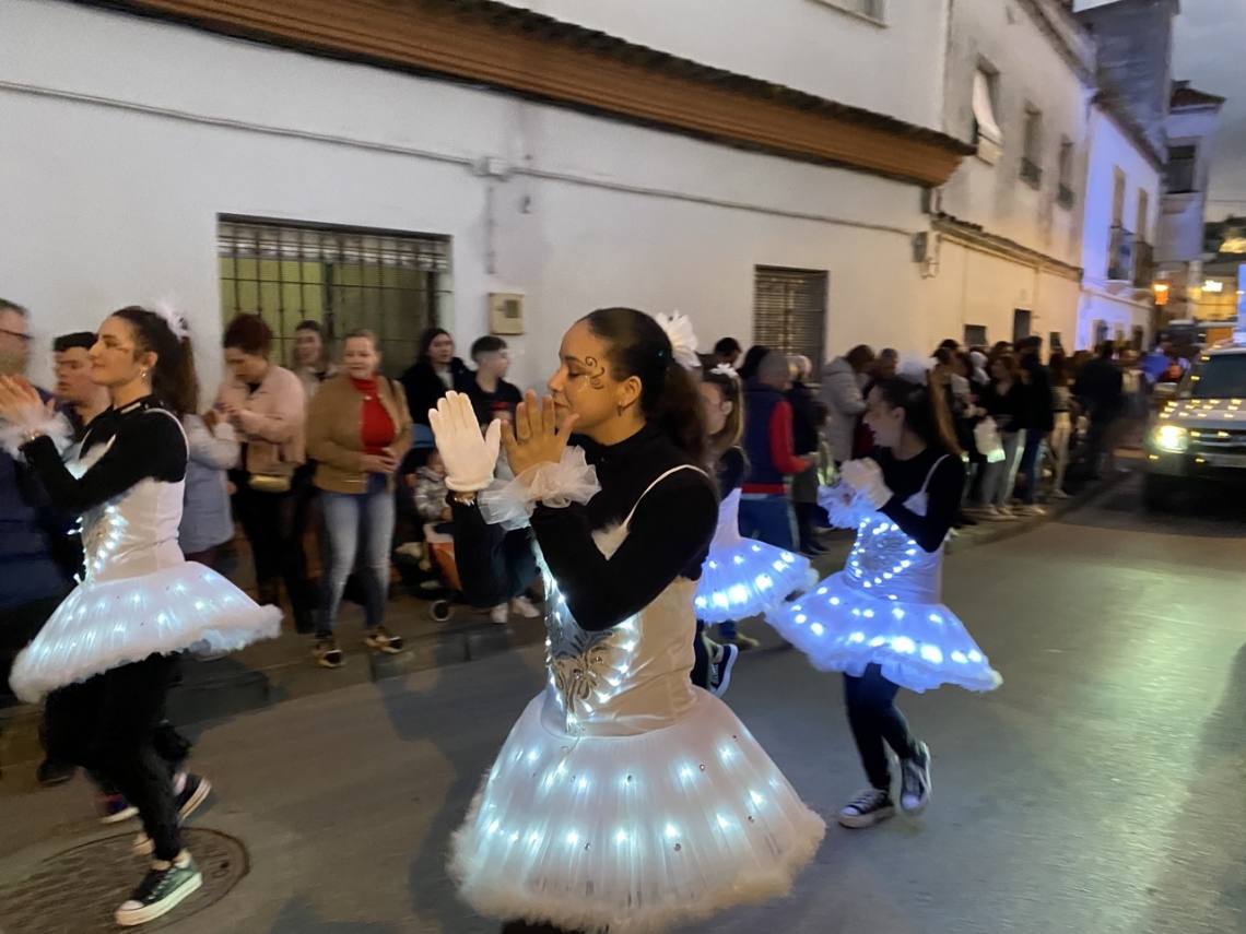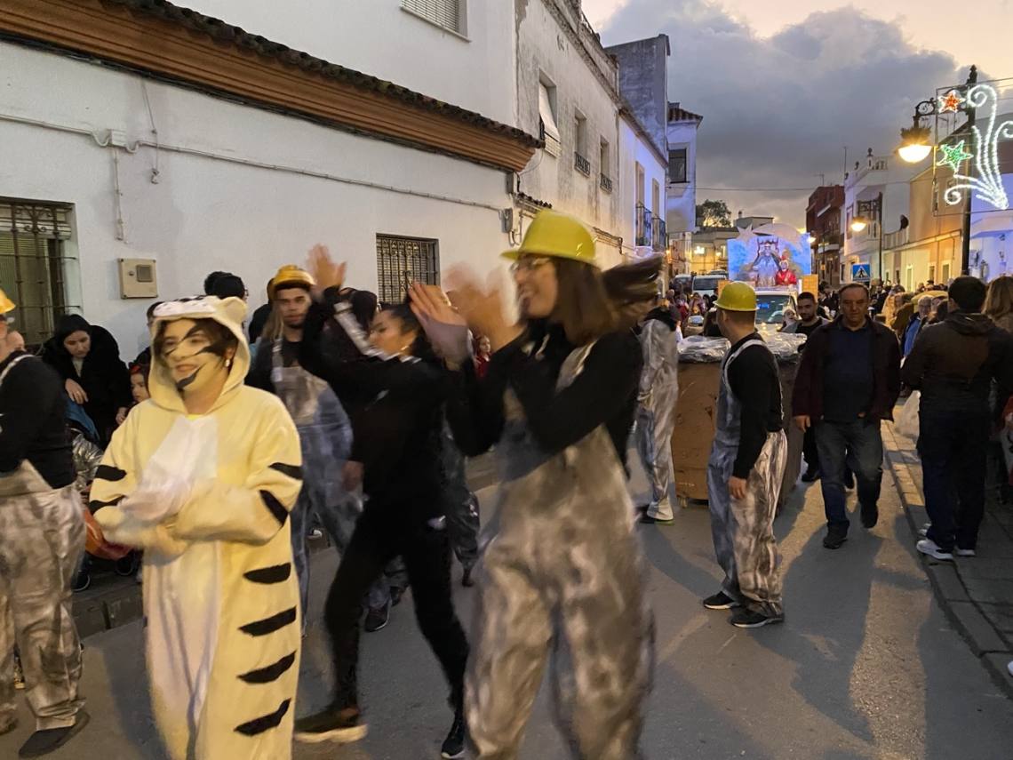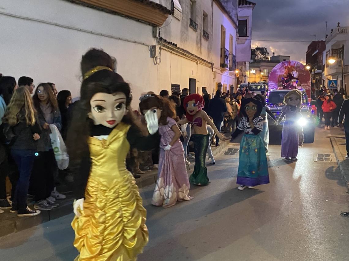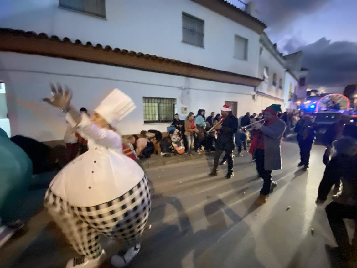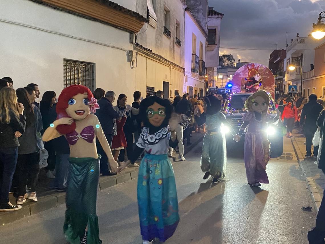 Cinco carrozas engalanadas, figurantes y animadores, una charanga, la banda de música ‘Maestro Infantes’ y el oportuno dispositivo de seguridad, integrado por la Policía Local y Protección Civil, han enfilado la avenida Alcalde Juan Rodríguez en dirección al recinto ferial, pasando por la Rotonda del Toro y la avenida Carlos Cano, despertando sonrisas y repartiendo felicidad, además de muchos caramelos, entre la gente, especialmente el público infantil.