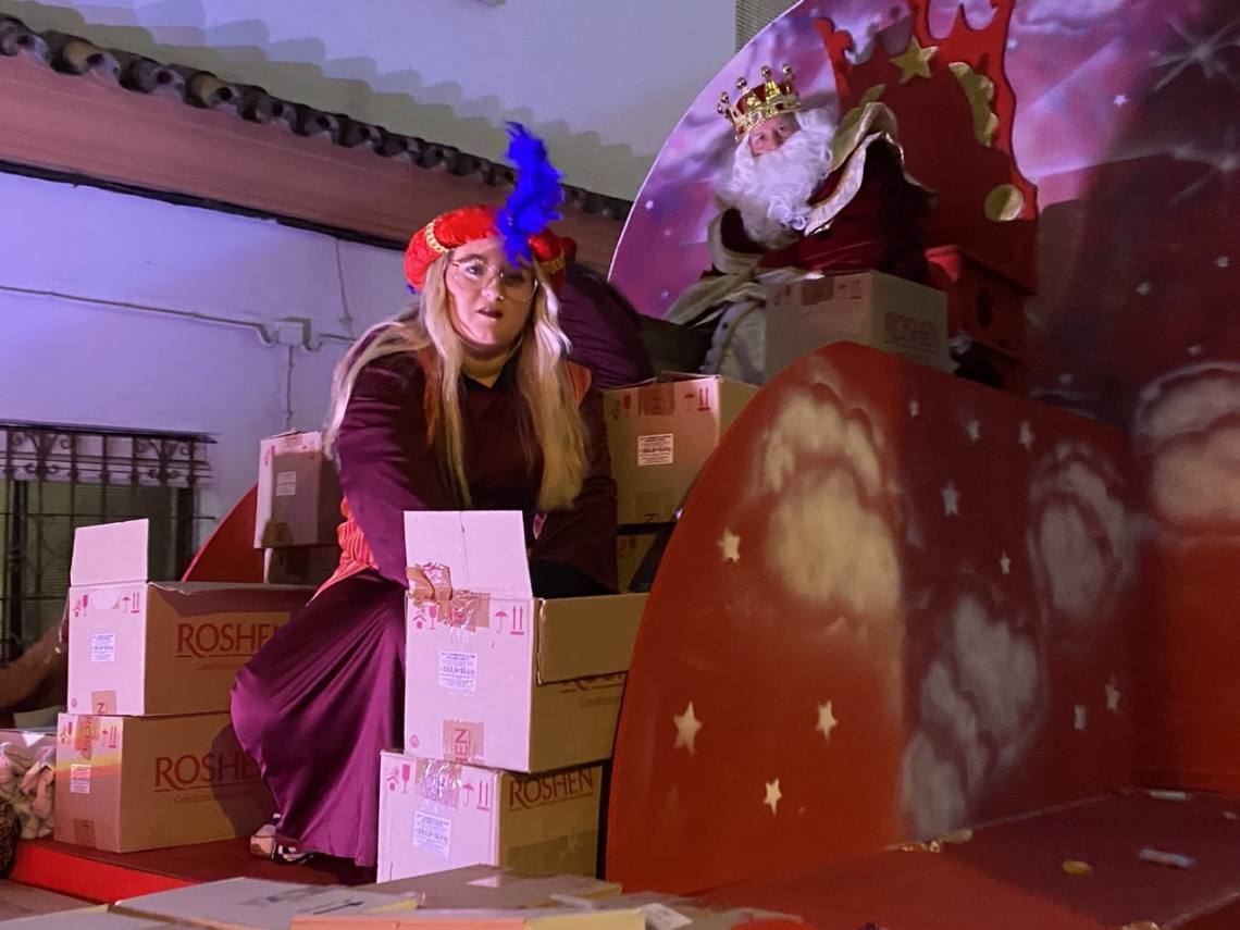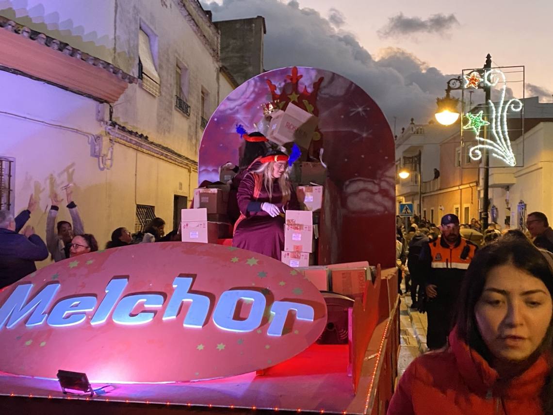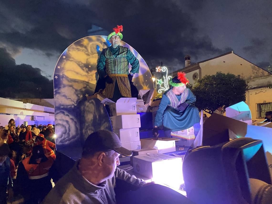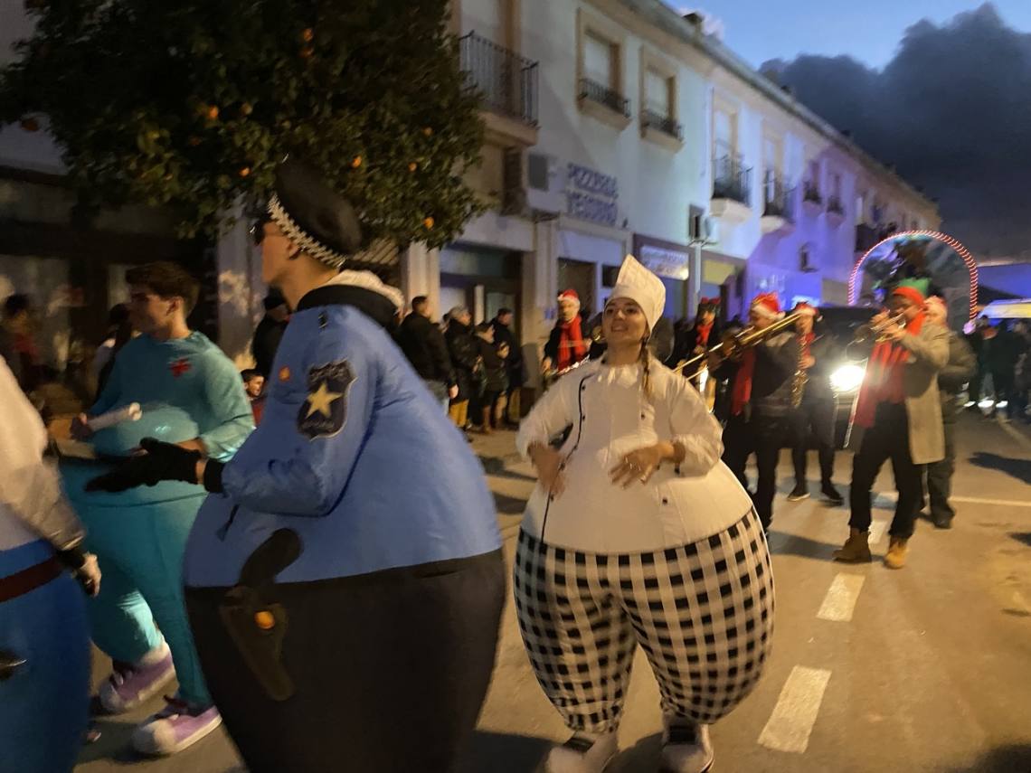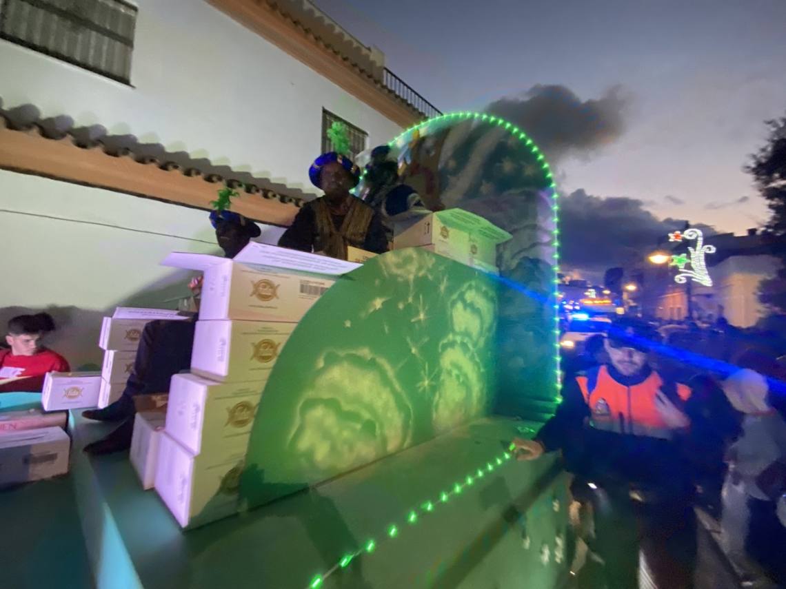 Cinco carrozas engalanadas, figurantes y animadores, una charanga, la banda de música ‘Maestro Infantes’ y el oportuno dispositivo de seguridad, integrado por la Policía Local y Protección Civil, han enfilado la avenida Alcalde Juan Rodríguez en dirección al recinto ferial, pasando por la Rotonda del Toro y la avenida Carlos Cano, despertando sonrisas y repartiendo felicidad, además de muchos caramelos, entre la gente, especialmente el público infantil.