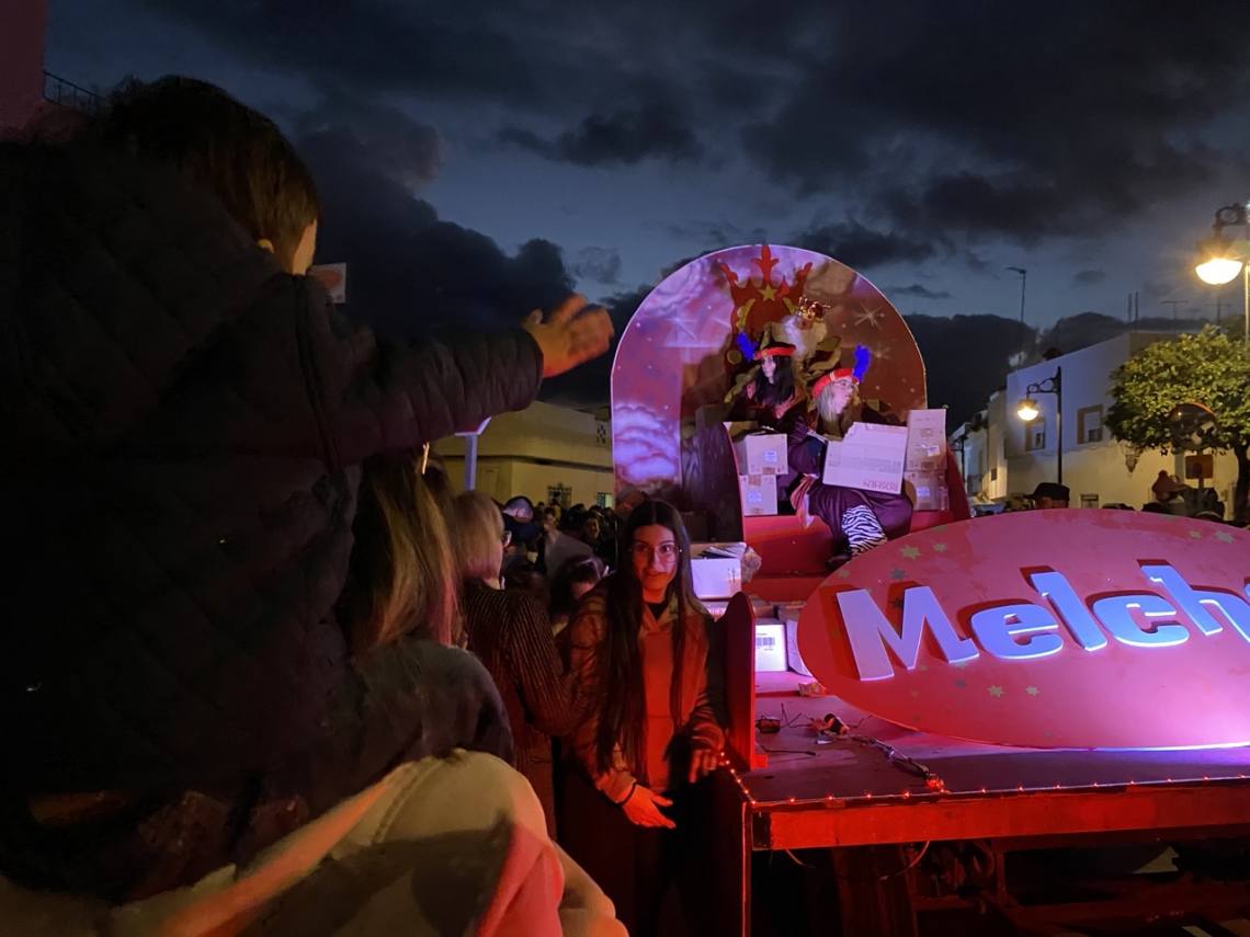 A las 18:30 h. la comitiva real, aclamada por una muchedumbre de mayores y pequeños que le ha ido flanqueado a diestra y siniestra el camino, ha iniciado el recorrido que tenía previsto desde la barriada El Palmarillo.