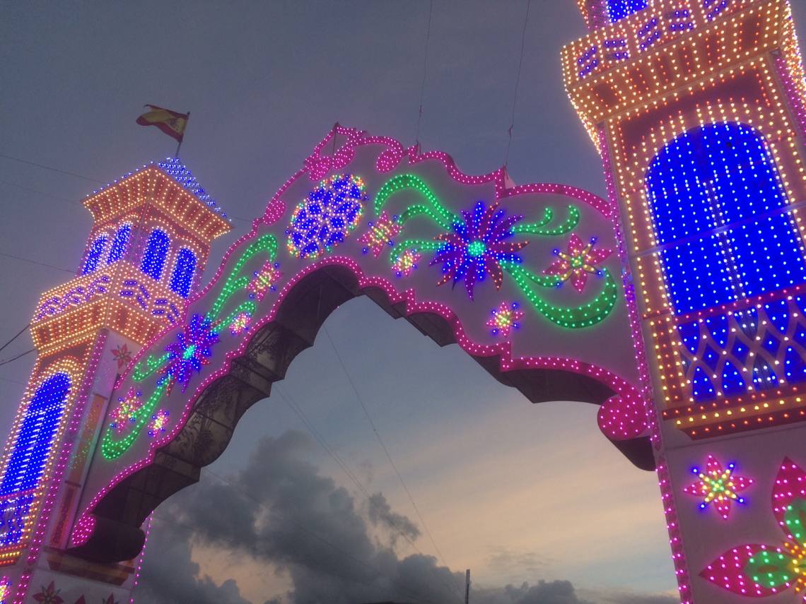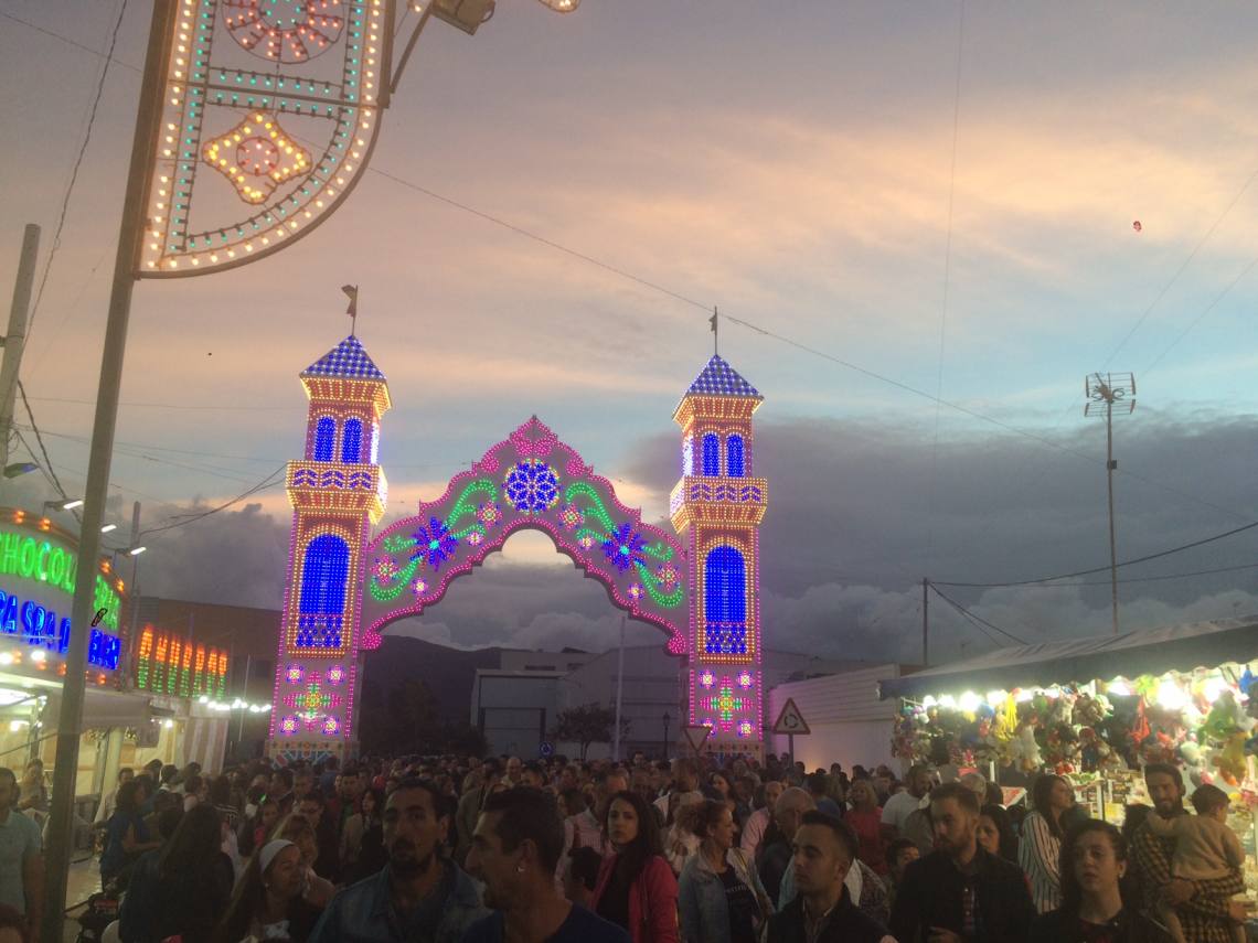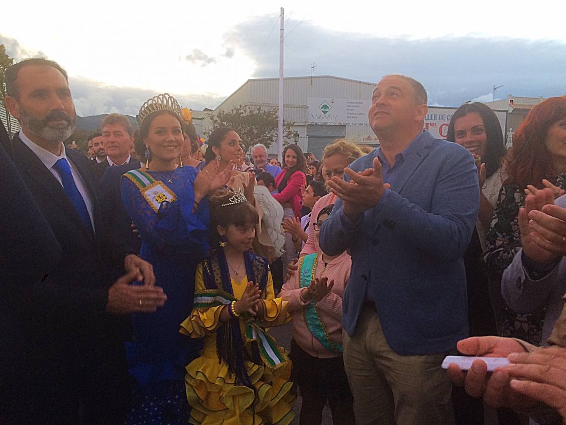Tras finalizar la cabalgata junto a la portada de la feria la reina juvenil, Nuria Gómez Gutiérrez y la reina infantil, Amaia Gabiola del Corral,  junto al alcalde, Jorge Romero, y la delegada de Festejos, Carmen Roldán, han dado al botón del encendido del recinto ferial.