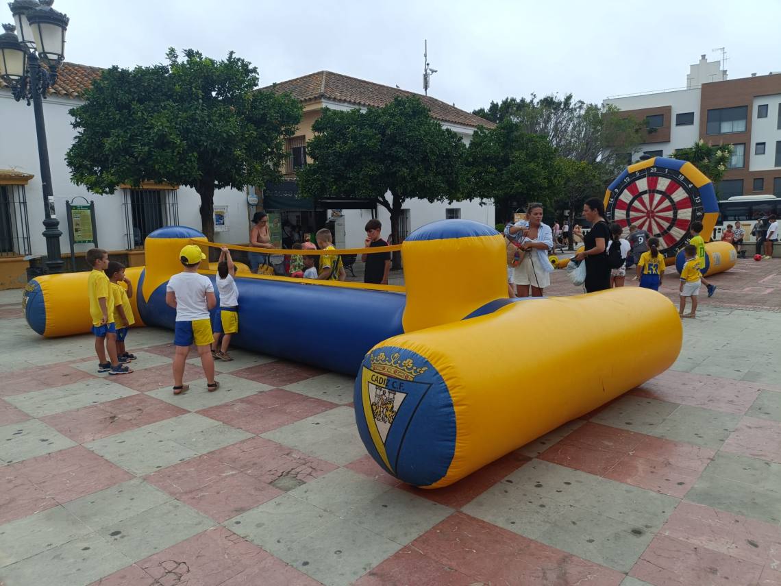El tour lleva este año como lema ‘Latidos por la provincia’, donde niños y niñas del Cádiz han disfrutado de una mañana diferente con los hinchables de la diana de precisión, el hinchable Fut-Voley y el Mini Mirandilla; además de pintacaras, manualidades y sorteos de ‘merchandising’ del equipo amarillo entre los asistentes.