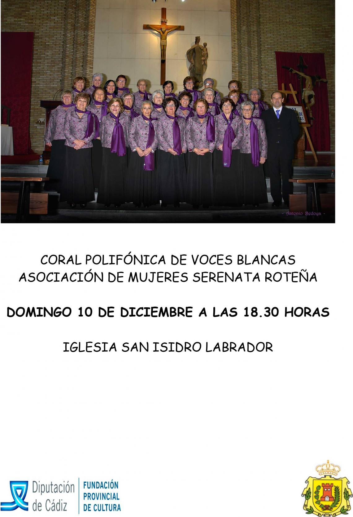 La Delegación de Cultura del Ayuntamiento de Los Barrios informa que este domingo 10 de diciembre a las 18.30 horas en la iglesia parroquial de San Isidro labrador está previsto un concierto de ‘Villancicos Clásicos’ a cargo de la Coral Polifónica de Voces Blancas de la Asociación de mujeres Serenata Roteña. Esta actividad se ofrece a través de la Fundación Provincial de Cultura de la Excelentísima Diputación de Cádiz.