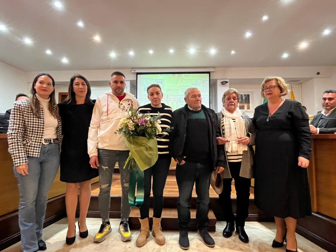 La delegada de Políticas de Igualdad y la presidenta del Consejo Local de la Mujer, María José Alconchel, han regalado un bonito ramo de flores a sus padres, Eduardo Herrera Pecino y Leonor Castro Valencia, junto a sus hermanos, en un momento que ha conmovido y arrancado más de una lágrima entre todos los presentes.