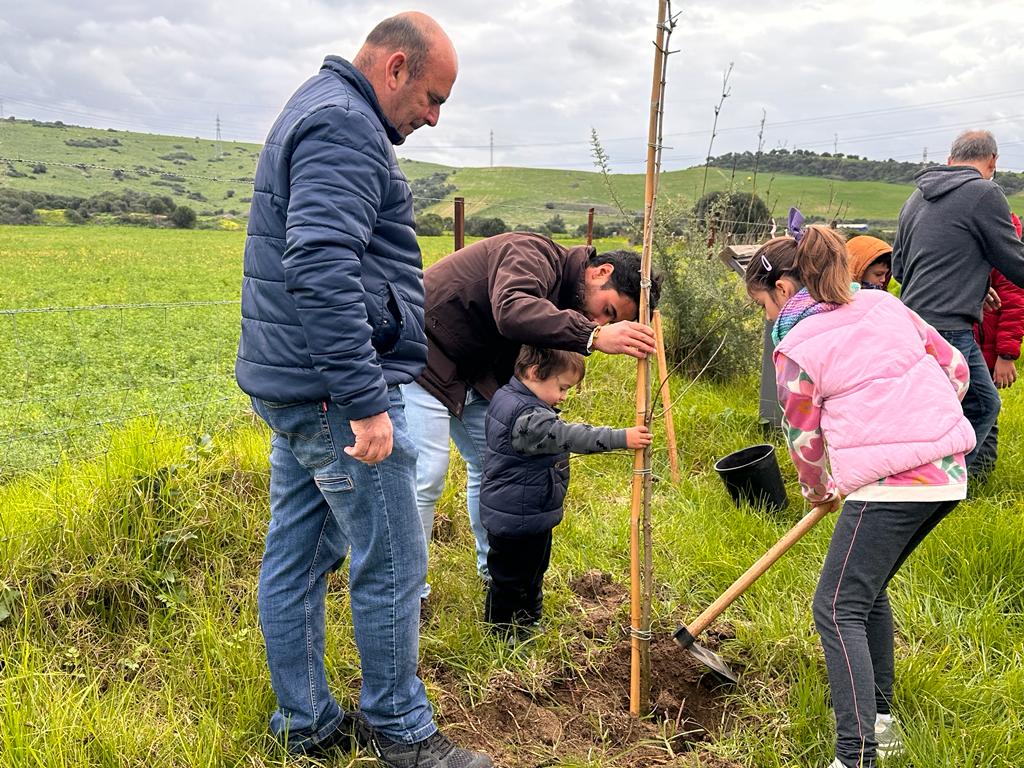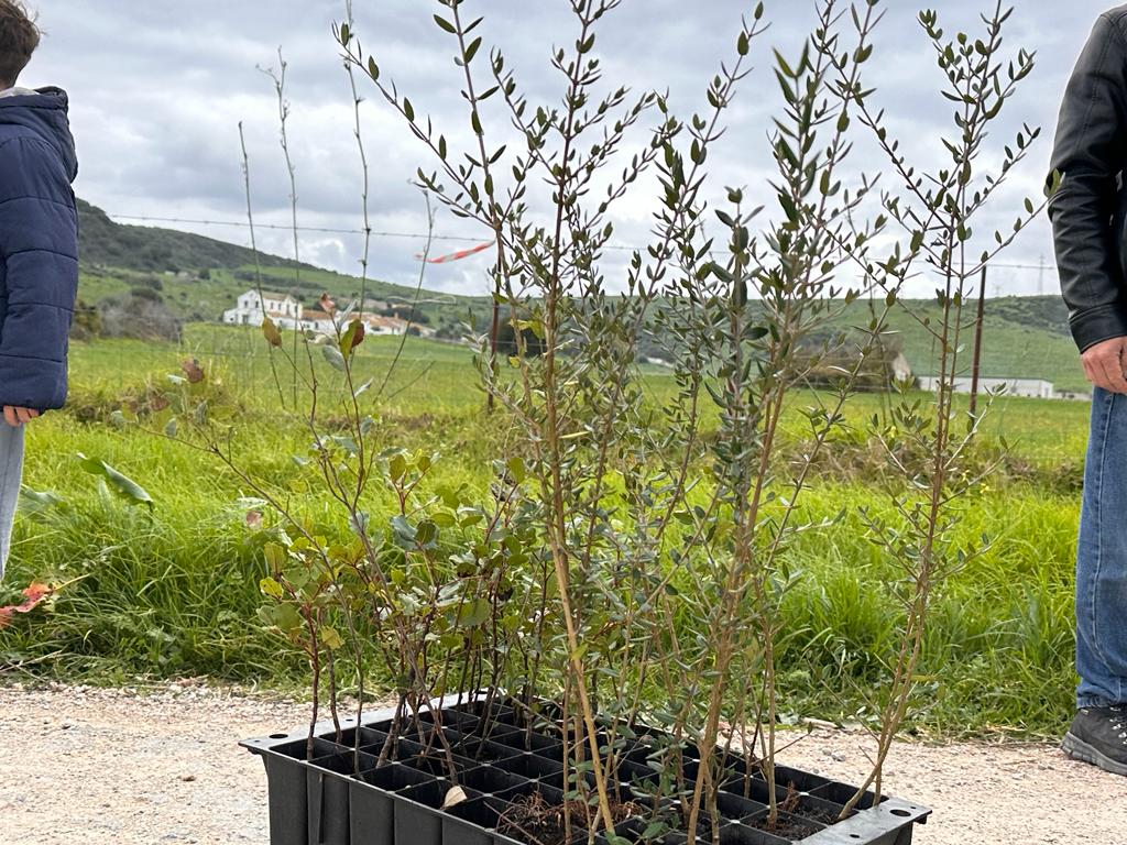 Los plantones y herramientas fueron aportadas por el Ayuntamiento y las especies autóctonas mediterráneas elegidas han sido: acebuches, algarrobos, alcornoques y fresnos.