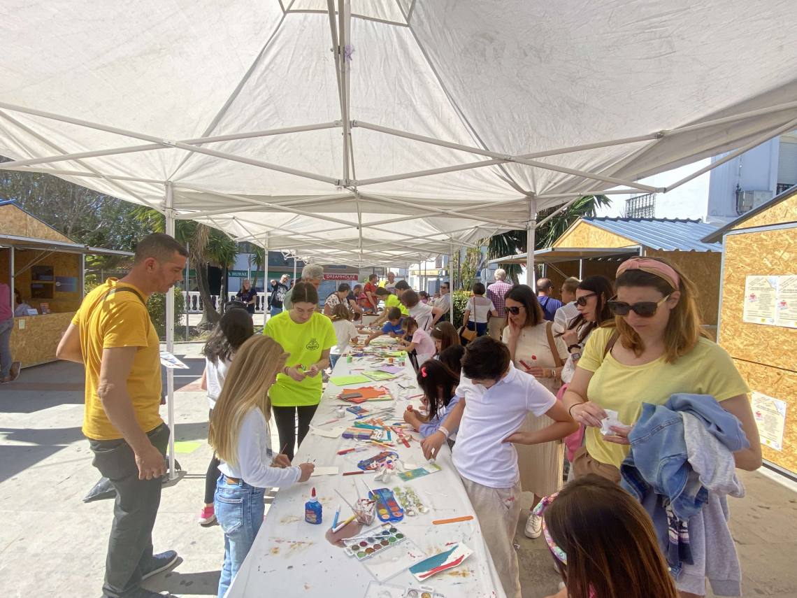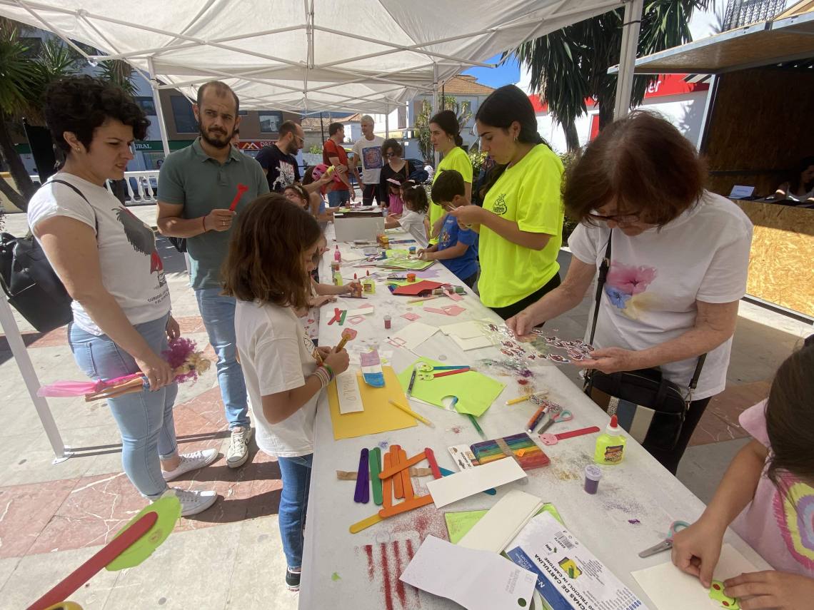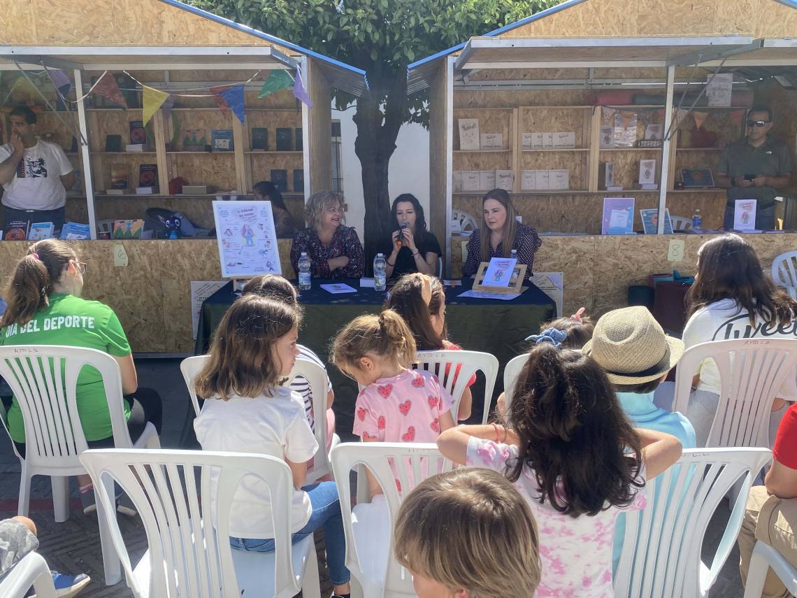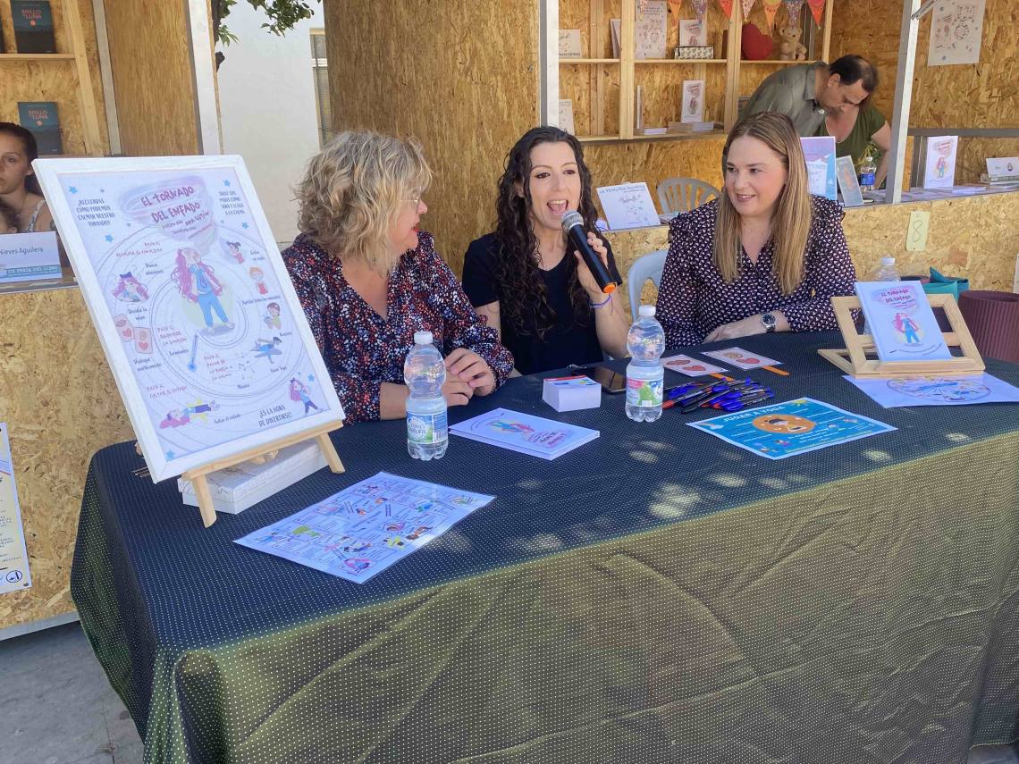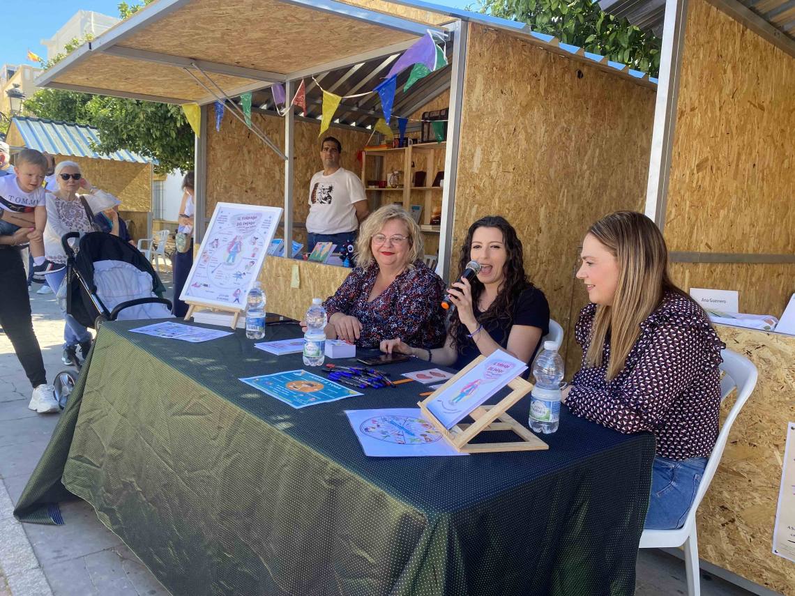 La III Feria del Libro Villa de Los Barrios se ha reanudado esta mañana en el Paseo de la Constitución con un taller de páginas para niños y niñas, que ha tenido una excelente acogida entre los más pequeños, y la presentación del libro “El tornado del enfado”, junto a una charla sobre yoga y otras formas para pasar de la rabia a la calma y resolver conflictos, de Ana Gután.