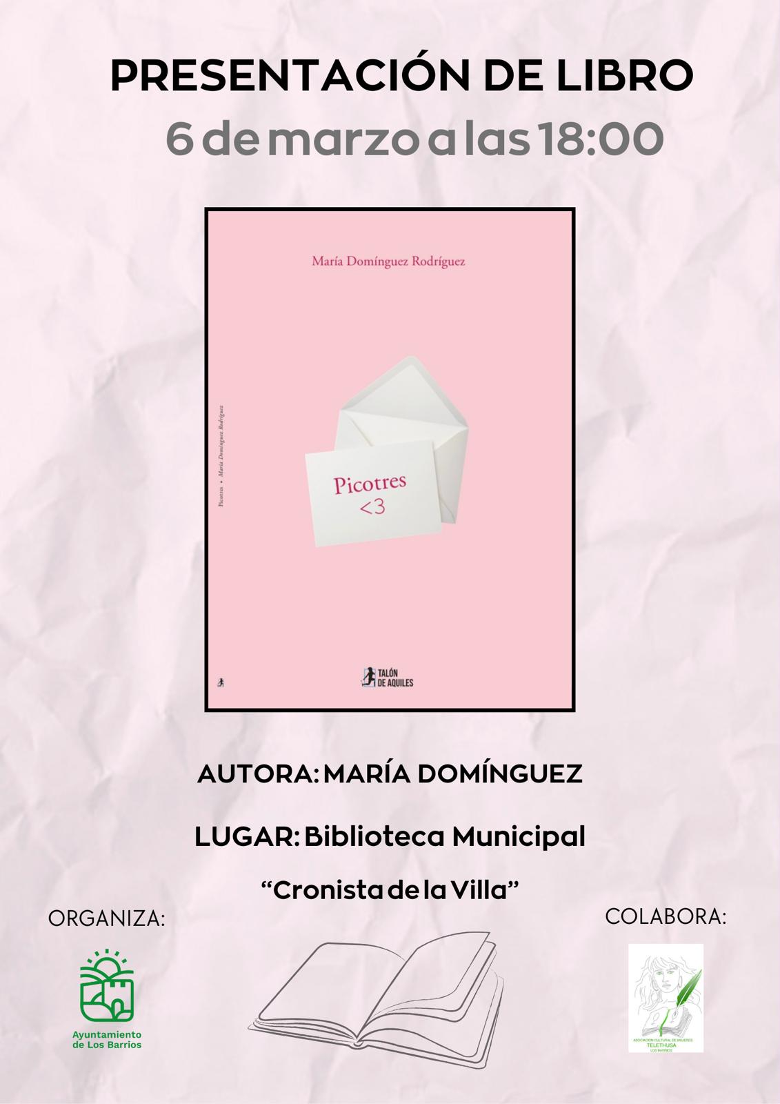 El municipio de Los Barrios se prepara para recibir una de las voces emergentes de su panorama literario actual. El próximo viernes 6 de marzo, la joven escritora María Domínguez Rodríguez presentará de manera oficial su primera obra, un poemario titulado “Picotres <3”. El acto tendrá lugar a las 18:00 horas en la Biblioteca Municipal “Cronista de la Villa” y está organizado por la delegación de Cultura, que dirige Cristina Marchante, con la colaboración de la Asociación Cultural de Mujeres ‘Telethusa’.