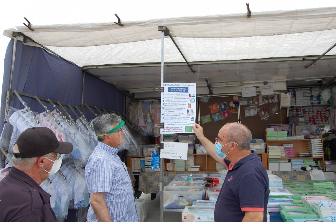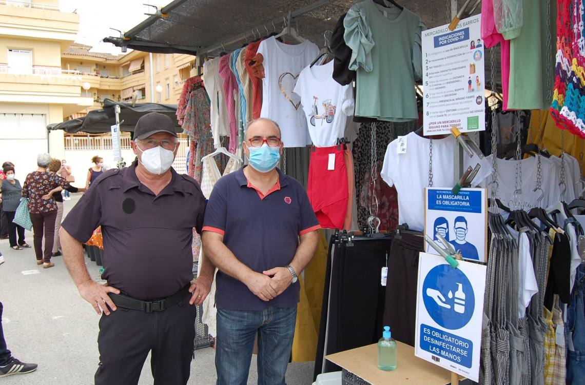 José Antonio Gómez, junto al responsable municipal de mercadillos, Juan Manzano, ha realizado un recorrido esta mañana por el recinto y ha podido comprobar que “todo el protocolo de seguridad se ha estado cumpliendo perfectamente; y, además, hemos tenido la ayuda de seis agentes del GOAP de la Policía Local y también del servicio de Protección Civil, a los que también hay que felicitar por su trabajo”.