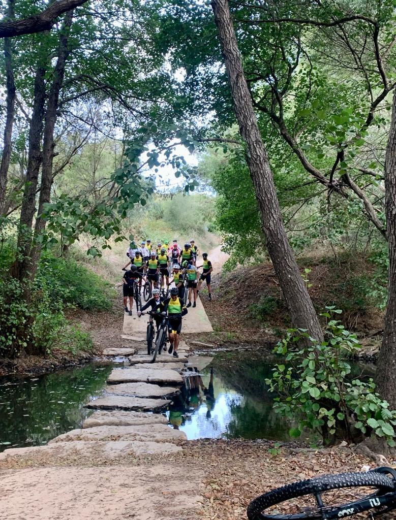 Luego se continuó por el Paseo de Coca, la comarca 440 hasta llegar a la Venta El Frenazo, tomar un café a cargo de la UCB y seguir la ruta hasta el Puente de Hierro, donde se han adentrado en el Corredor Verde Dos Bahías y se hizo otra parada para ver un yacimiento del Paleolítico de hace miles de años, situado en una de las antiguas terrazas del río Palmones.