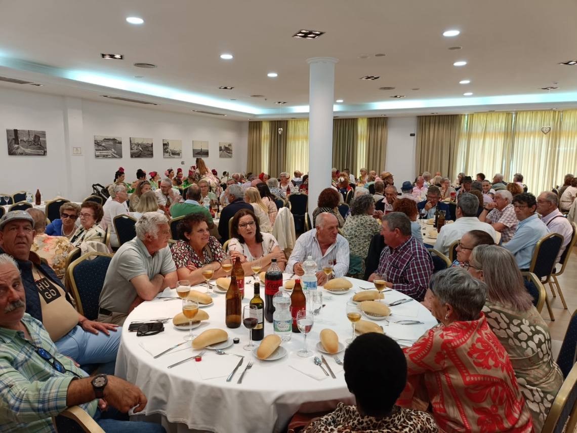 Unos novecientos pensionistas disfrutan durante la jornada de hoy jueves, 16 de mayo, del tradicional almuerzo de homenaje a los mayores en las instalaciones del hotel ‘Montera Plaza’, cedidas amablemente para este evento, con motivo de la Feria y Fiestas Patronales en honor de San Isidro Labrador de la villa de Los Barrios.