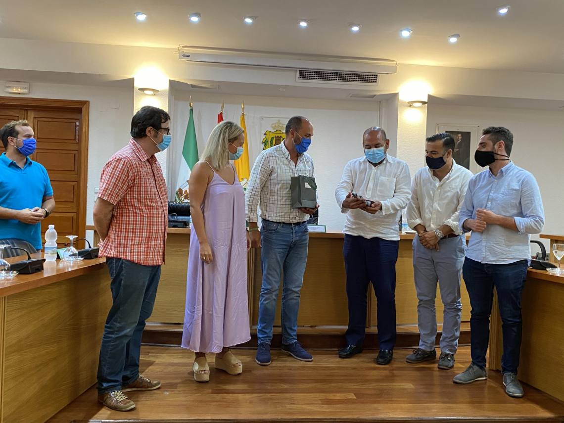 El acto, que el homenajeado no esperada, se ha celebrado en el salón de plenos de la Casa Consistorial y ha estado presidido por el alcalde, Miguel Fermín Alconchel. También ha contado con la presencia de los concejales David Gil, Sara Lobato, Pablo García, Daniel Pérez Cumbre, Inmaculada Domínguez y Daniel Perea González, así como Rafael Oliva, que próximamente hará efectiva la toma de su acta en sustitución de Rubén Castilllo, representando al pleno del Consistorio.