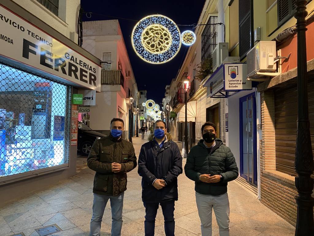 El municipio de Los Barrios ya cuenta desde esta tarde-noche con su alumbrado especial de Navidad. El concejal delegado de Cultura y Festejos, Daniel Pérez Cumbre, acompañado de los también ediles del equipo de gobierno municipal Evaristo Delgado, Pablo García y Antonio Dávila, ha presidido el encendido que ha tenido lugar en el Paseo de la Constitución, aunque sin acto protocolario alguno en esta ocasión como consecuencia de la situación excepcional provocada por la pandemia de covid-19.