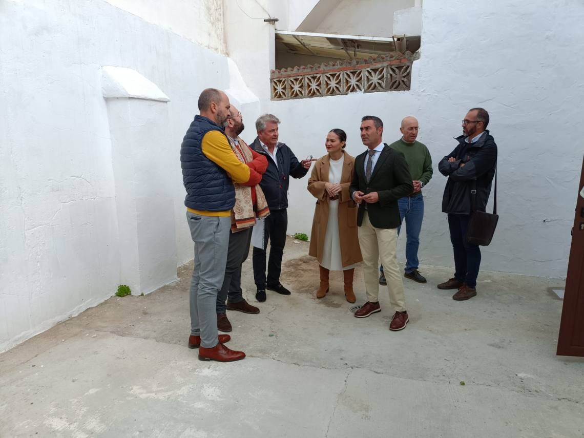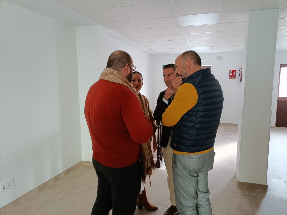 El alcalde de Los Barrios, Miguel Alconchel; el diputado de Área de Cooperación de la Diputación de Cádiz, Javier Bello; el primer teniente de alcalde, Pablo García, y la concejala de Urbanismo, Sara Lobato, han visitado la antigua sede de la peña Toro Embolao de la calle Los Francos, tras su reforma gracias al plan Profea.