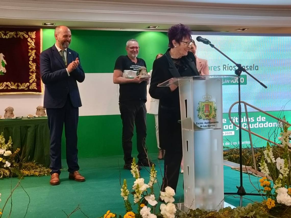 En Deportes, esta edición se ha reconocido a Alfonso Espinosa Guerrero, por haber destacado de un modo extraordinario en su compromiso con la actividad deportiva de Los Barrios fomentando el deporte como una alternativa de ocio saludable y promoviendo valores como el esfuerzo, el trabajo en equipo y el respeto. Un premio que ha entregado la primera teniente de alcalde, Sara Lobato.