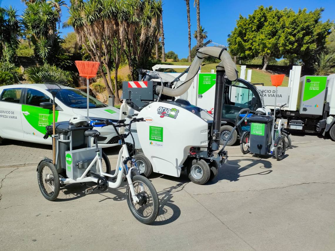 También se cuenta con aspiradores/sopladores mochila, un furgón de hidrolimpiadora dotada de agua caliente para el tratamiento de zonas peatonales; una desbrozadora, y una motocicleta eléctrica destinada a la inspección de los trabajos.