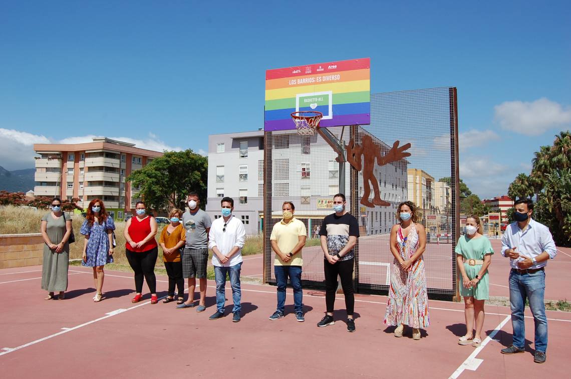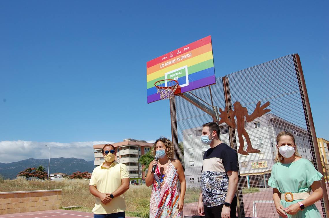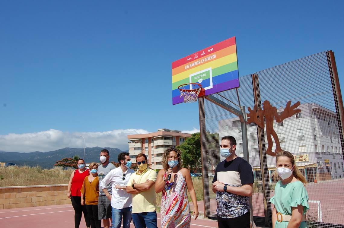 Como señaló en su intervención Sara Lobato, “gracias a la colaboración con la Asociación Roja Directa hemos dado otro paso más hacia la igualdad y la diversidad con la instalación de este tablero de baloncesto con los colores del arco iris y con un lema a favor del colectivo LGTBI; también agradecer la implicación la Mancomunidad del Campo de Gibraltar y la presencia de dos vicepresidentes”.