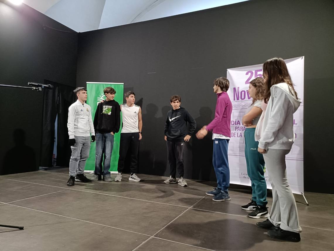 En esta ocasión se ha contado con una escenificación a cargo de alumnos del IES Sierra Luna sobre distintas situaciones de violencia de género que se pueden llevar a cabo en edad juvenil, pero que no son vistas como tales por una gran parte de la juventud.