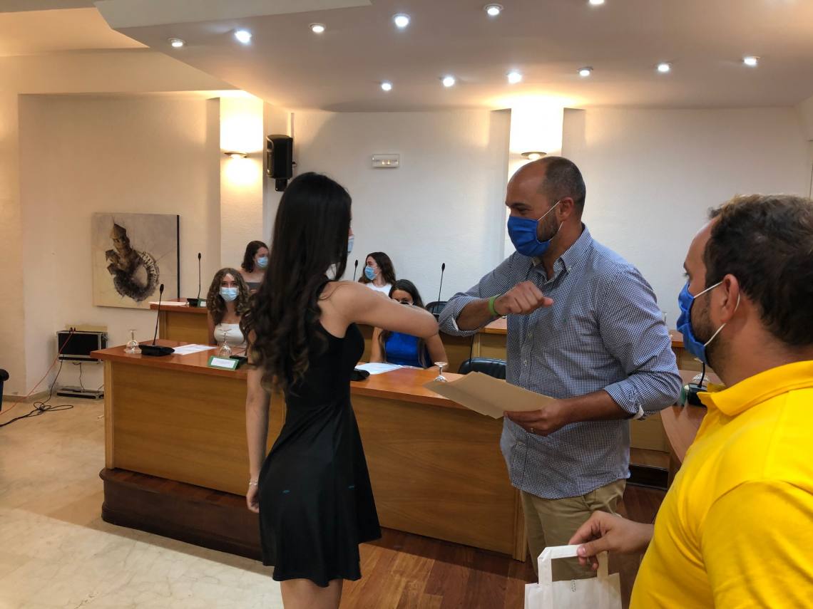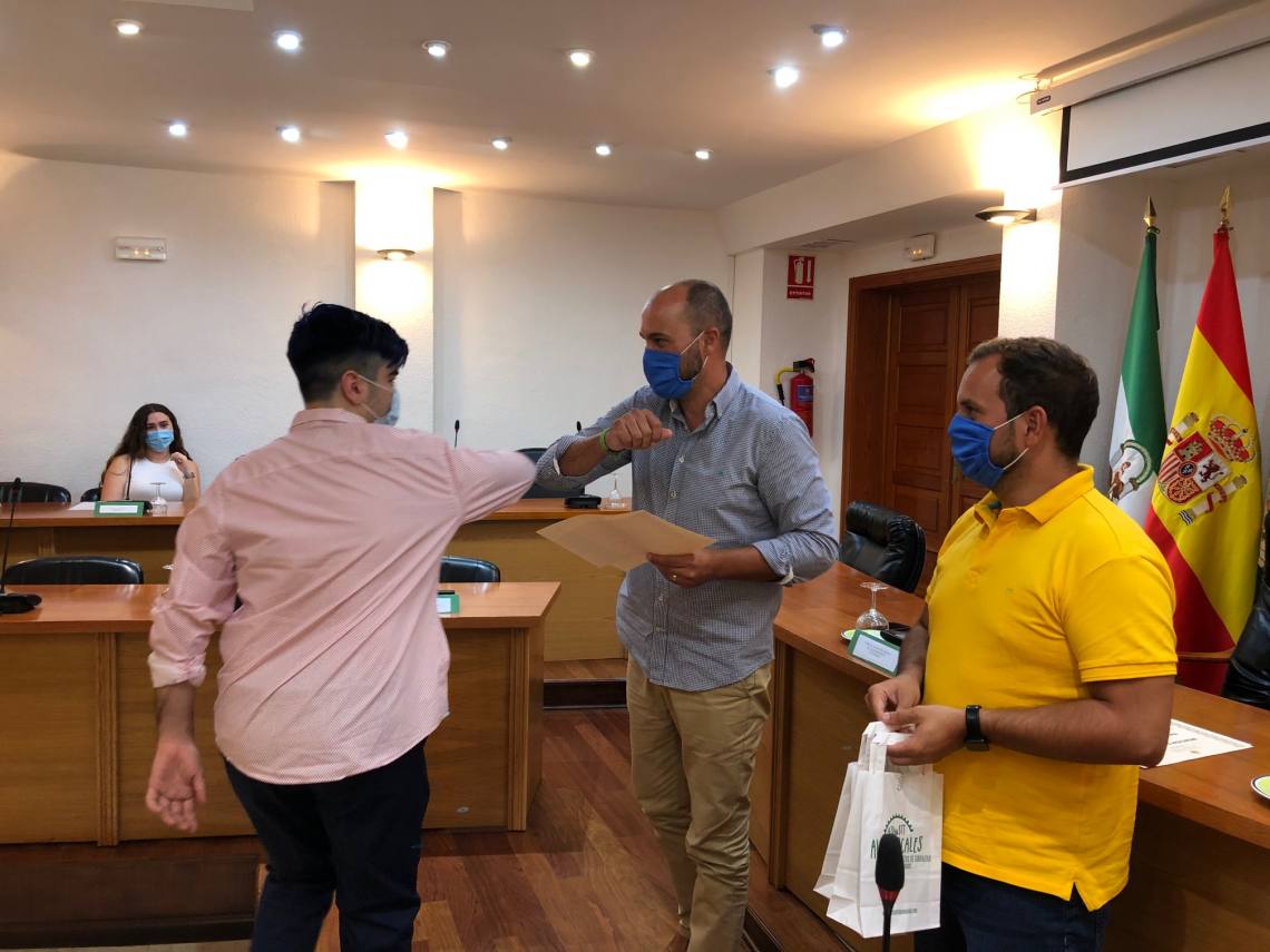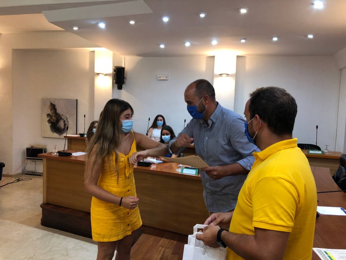 Estos alumnos han sido reconocidos por los buenos resultados académicos obtenidos en Bachillerato y Selectividad en un acto celebrado en el salón de plenos del Ayuntamiento siguiendo todas las medidas de seguridad frente al Covid19.
