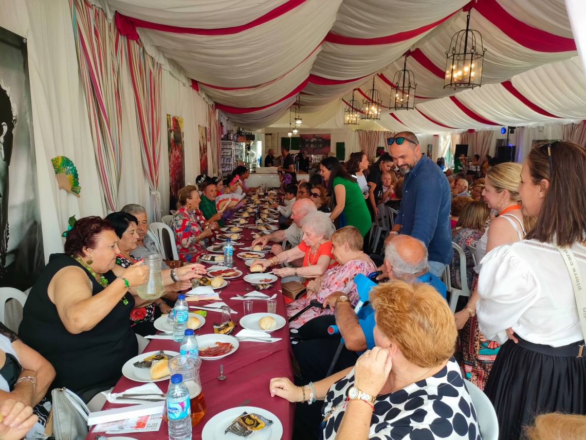 Unos 950 mayores del municipio han disfrutado este martes del tradicional almuerzo de homenaje a los mayores que ha tenido lugar en varias casetas con motivo de la Feria de Los Barrios.