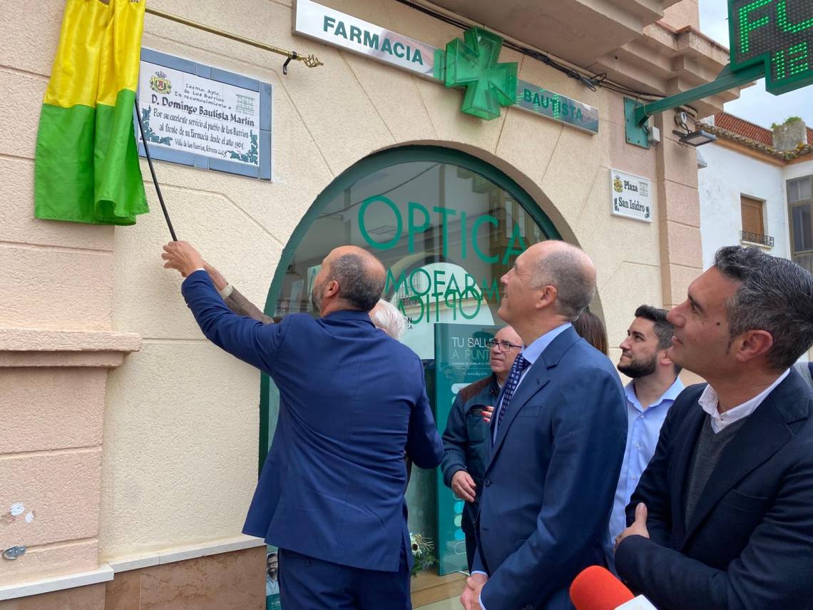 El alcalde en su intervención ha recordado a los anteriores titulares de esta farmacia, antes de la llegada de Domingo Bautista como: María Constanza; David Saiz Izquierdo; María Antonia Rey y Manuel López González.